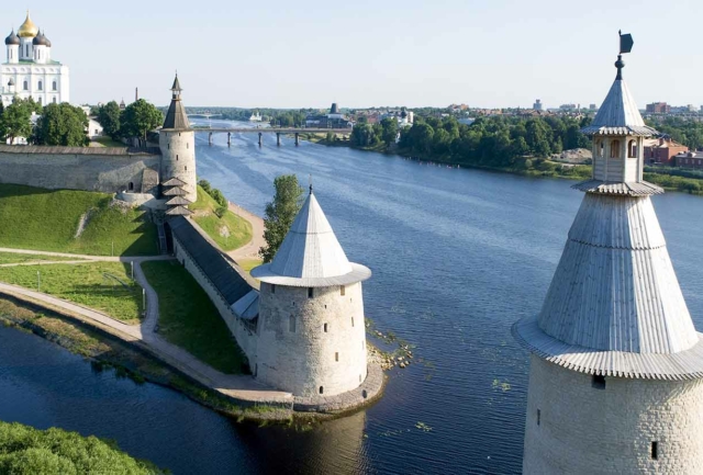 Столица Псковской области стоит на впадении реки Псковы в Великую (в 730 км от Москвы). Проживает тут сегодня под двести тысяч человек. Город из числа древнейших в России (903 год основания) — интересный, обязателен для посещения.