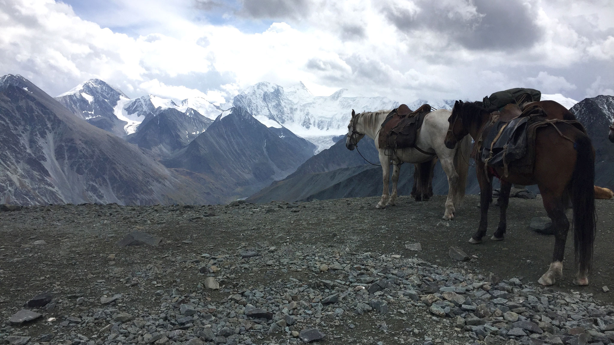 Кочевники, чей караванный путь пролегал через эти места, за эти три пика Белуху прозвали трехглавой. Со стороны плато Укок отчетливо видны все три вершины. Они же изображены и на гербе Республики Алтай.
