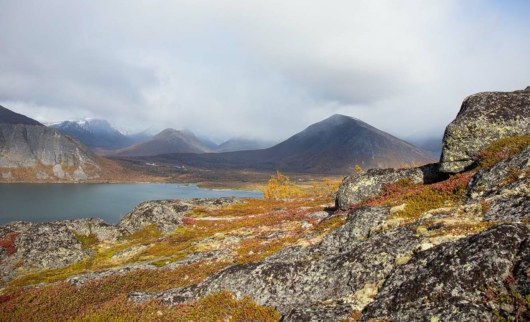 На плоских верхушках Хибин растительности — как у полысевшего человека, в природе это именуется тундра. А у подножия склонов расположилась тайга, и тут уже трогательные карликовые березки, мох и среди него — обилие грибов. Среди них нет ложных, они просто не водятся на Крайнем Севере — такой вот бонус людям за проживание в суровом климате. А еще тут очень красиво в акватории ближайших больших озер Имандра и Умбозеро.