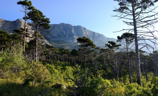 Крымские горы обожаемы туристами за чистейший воздух. Местная гряда покрыта буковыми и сосновыми лесами. Особенно ими славится Крымский большой каньон, расположенный на склоне Ай-Петри.