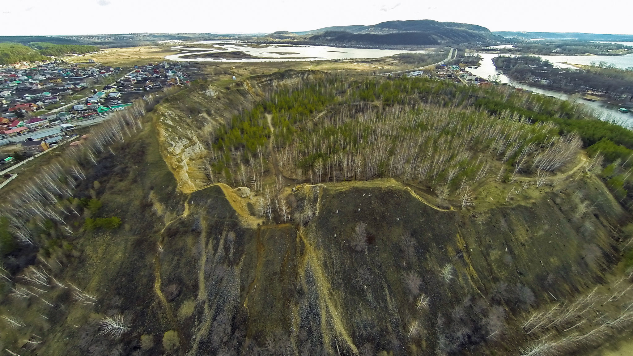 На вершинах гор оборудованы удобные смотровые площадки, с которых открывается красивый вид на село Ширяево и Волгу.