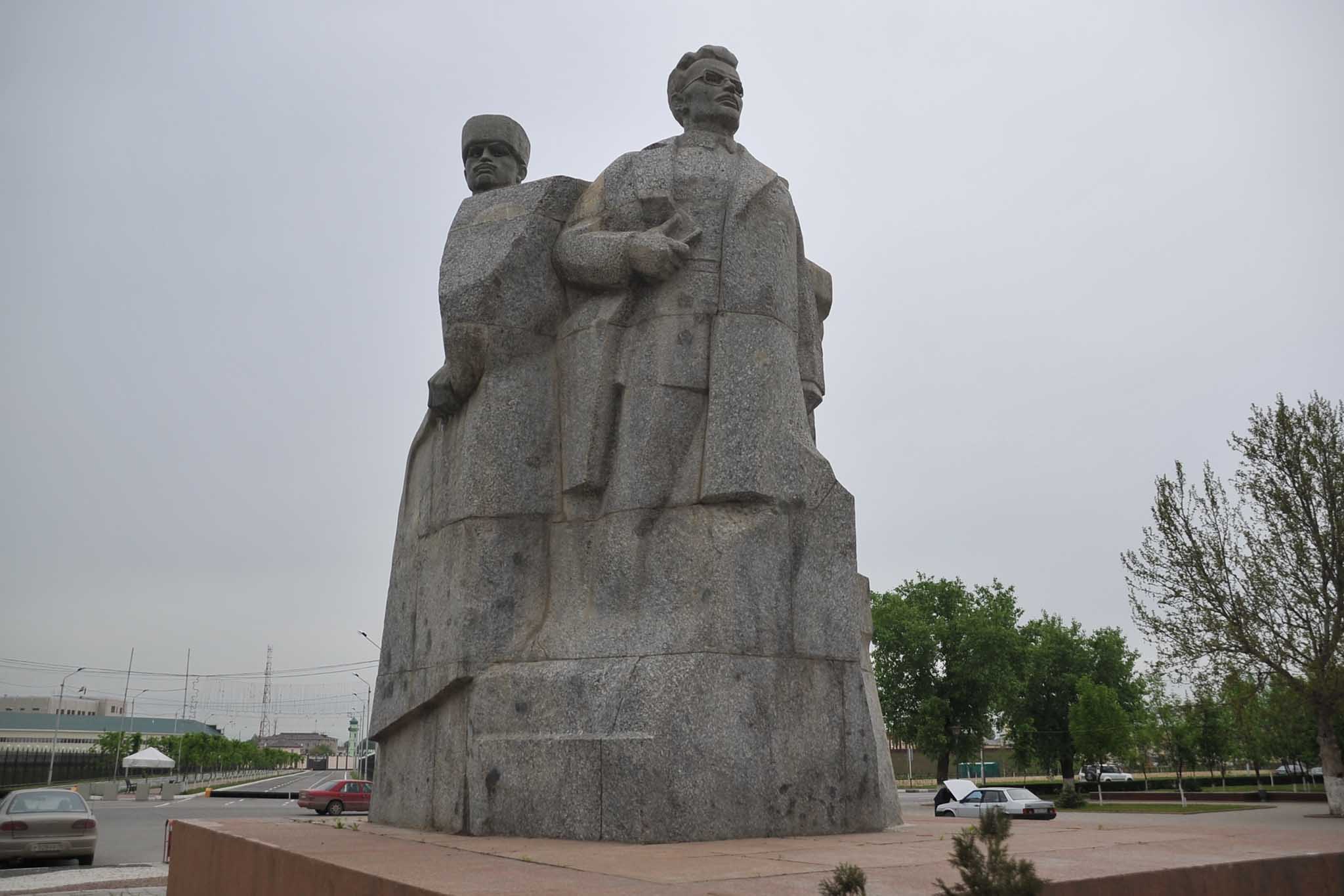 Небольшая площадь в центре города примечательна гранитным монументом, посвященным трем революционерам. Памятник, который был установлен в 1973 году, изображает русского Николая Гикало, чеченца Асланбека Шерипова и ингуша Гапура Ахриева. Каменная глыба с тремя фигурами стоит на небольшой мраморной площадке, а вокруг разбиты цветочные клумбы.