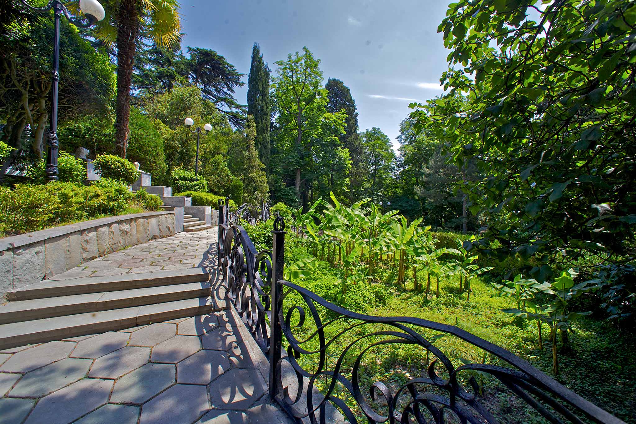 Гурзуфский парк сегодня поделен между двумя санаториями, однако представляет собой единый ансамбль. Это старейший ландшафтный парк Крыма. Тут произрастают десятки видов как исконно крымских, так и завезенных из южных стран растений, а многие цветы радуют посетителей даже зимой.