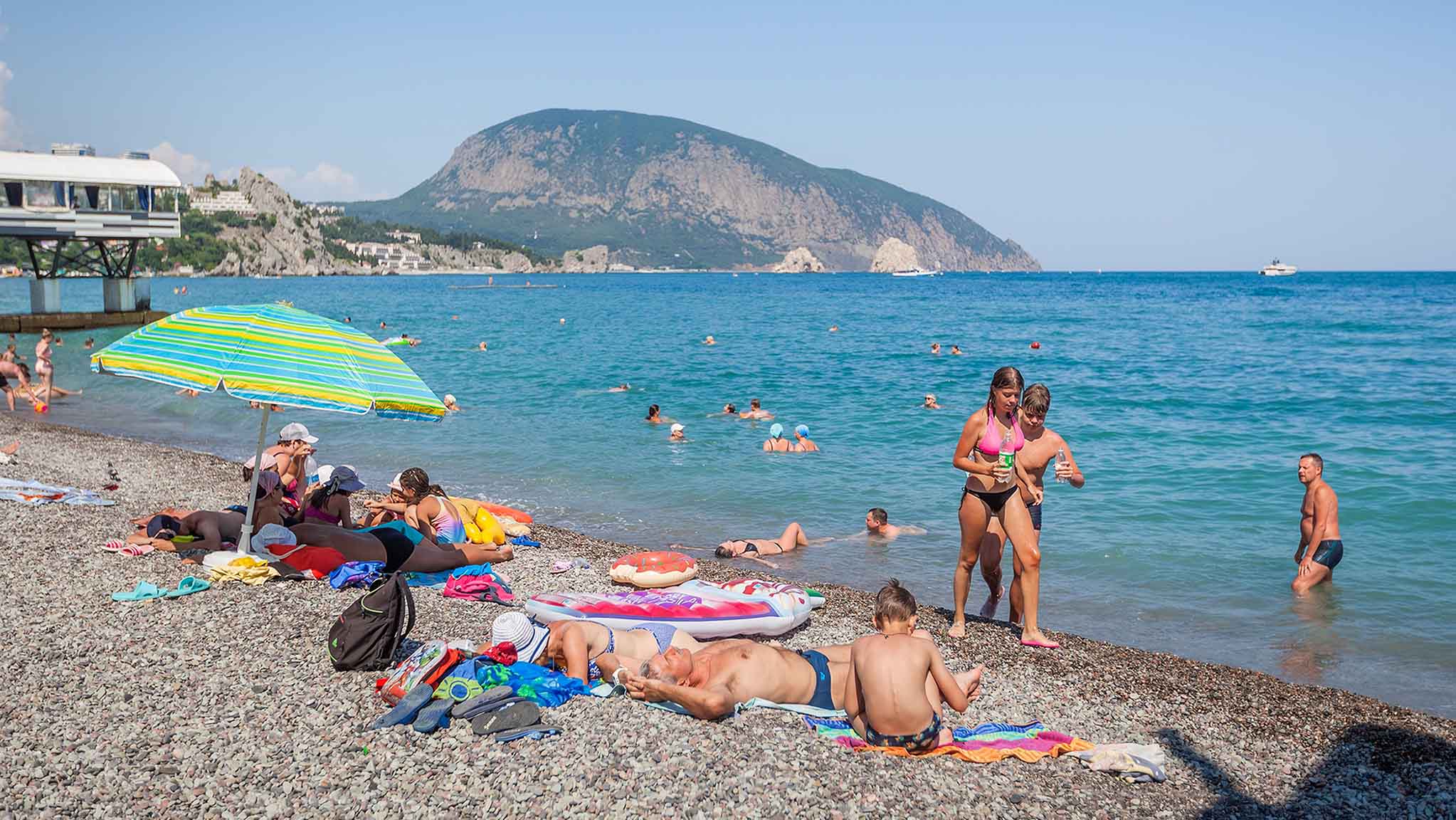 Самый популярный и известный — это поселковый пляж. Он довольно широкий и отлично оборудованный. А еще отсюда открывается великолепный вид на Аю-Даг.