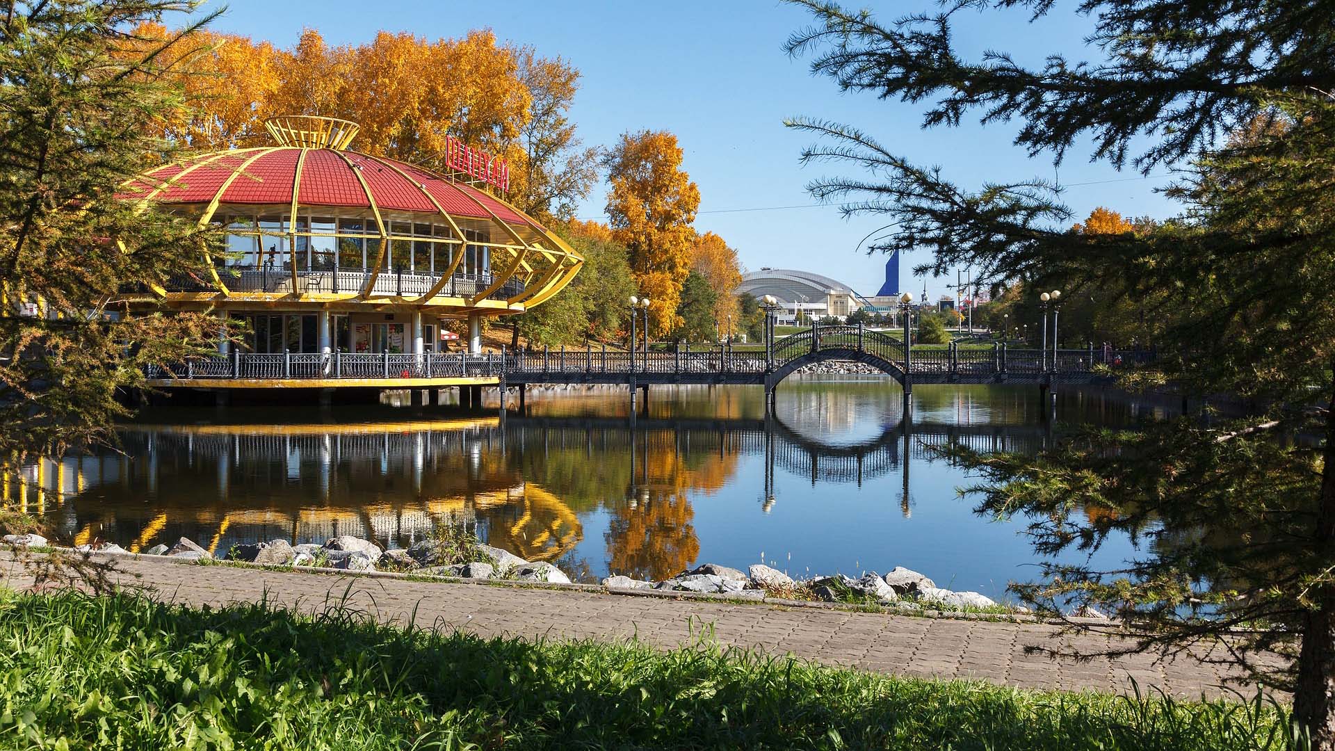 Прогулку по достопримечательностями Старо-Татарской слободы начнем с набережной озера Кабан. Отсюда открываются интересные панорамы противоположного берега Казани и красивый вид на драмтеатр Камала.