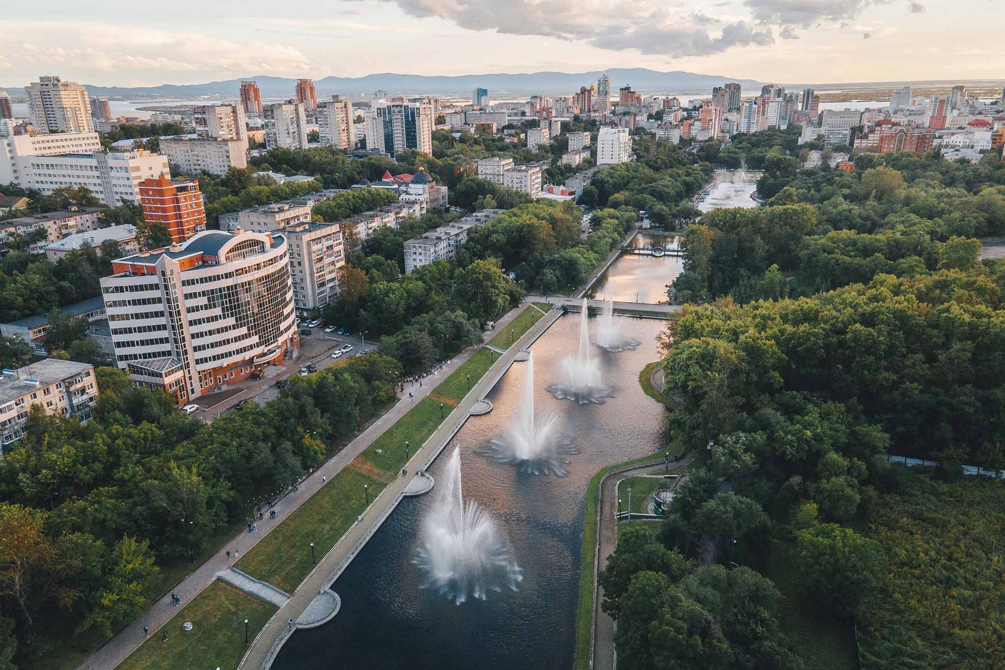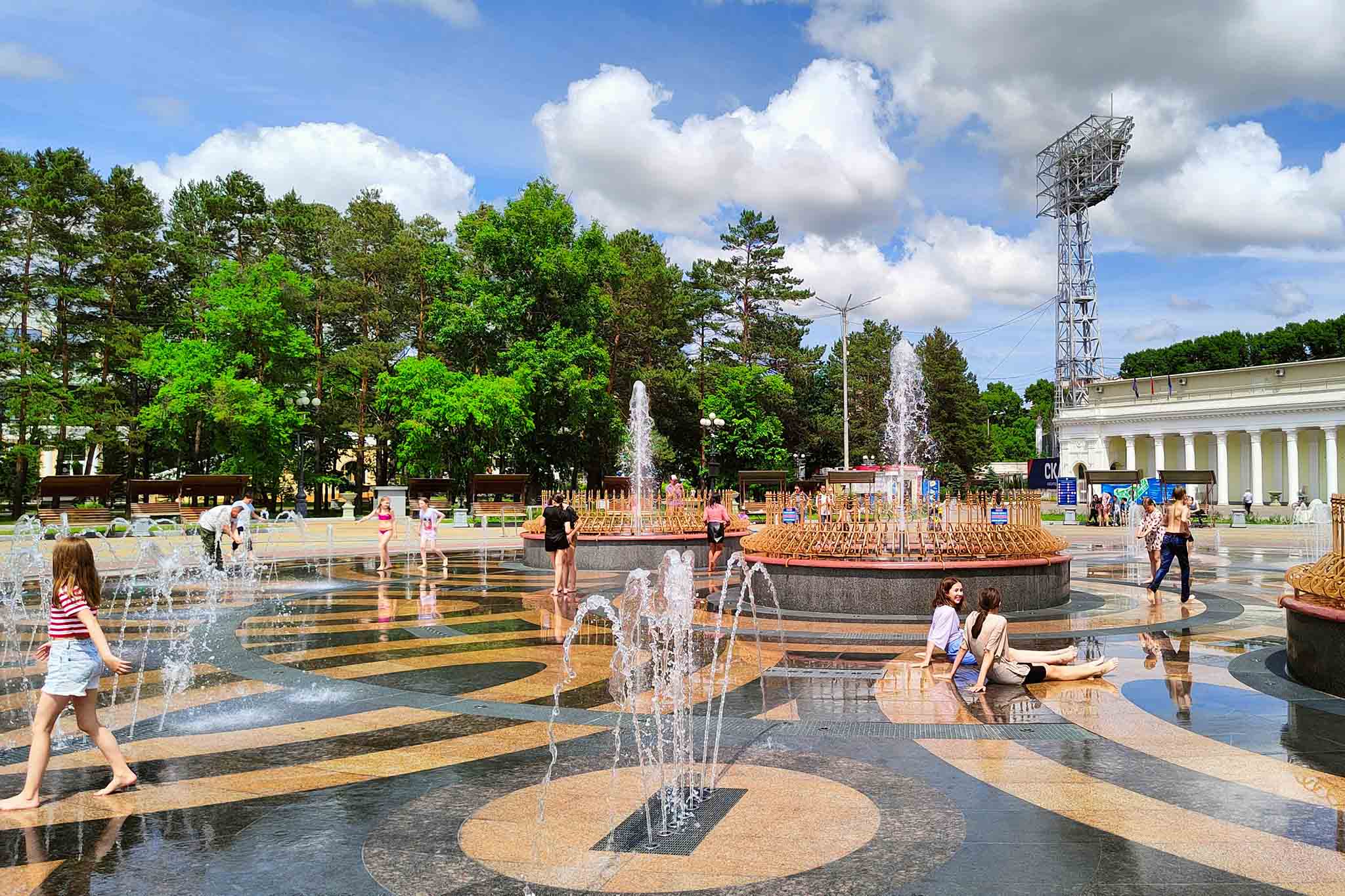 Поющие фонтаны на Уссурийском бульваре — одно из самых ярких летних зрелищ Хабаровска. С мая по сентябрь здесь проходят светомузыкальные шоу: струи воды взмывают на высоту до 35 метров, танцуя под классику, рок и современные хиты. На Верхнем пруду по пятницам и субботам в 21:30 добавляется лазерное шоу. Вокруг — аттракционы, прокат лодок, кафе. Фонтаны работают с 19:00 до 22:00 по средам, пятницам, выходным и праздникам, с перерывом с 20:00 до 21:00. Вход свободный.