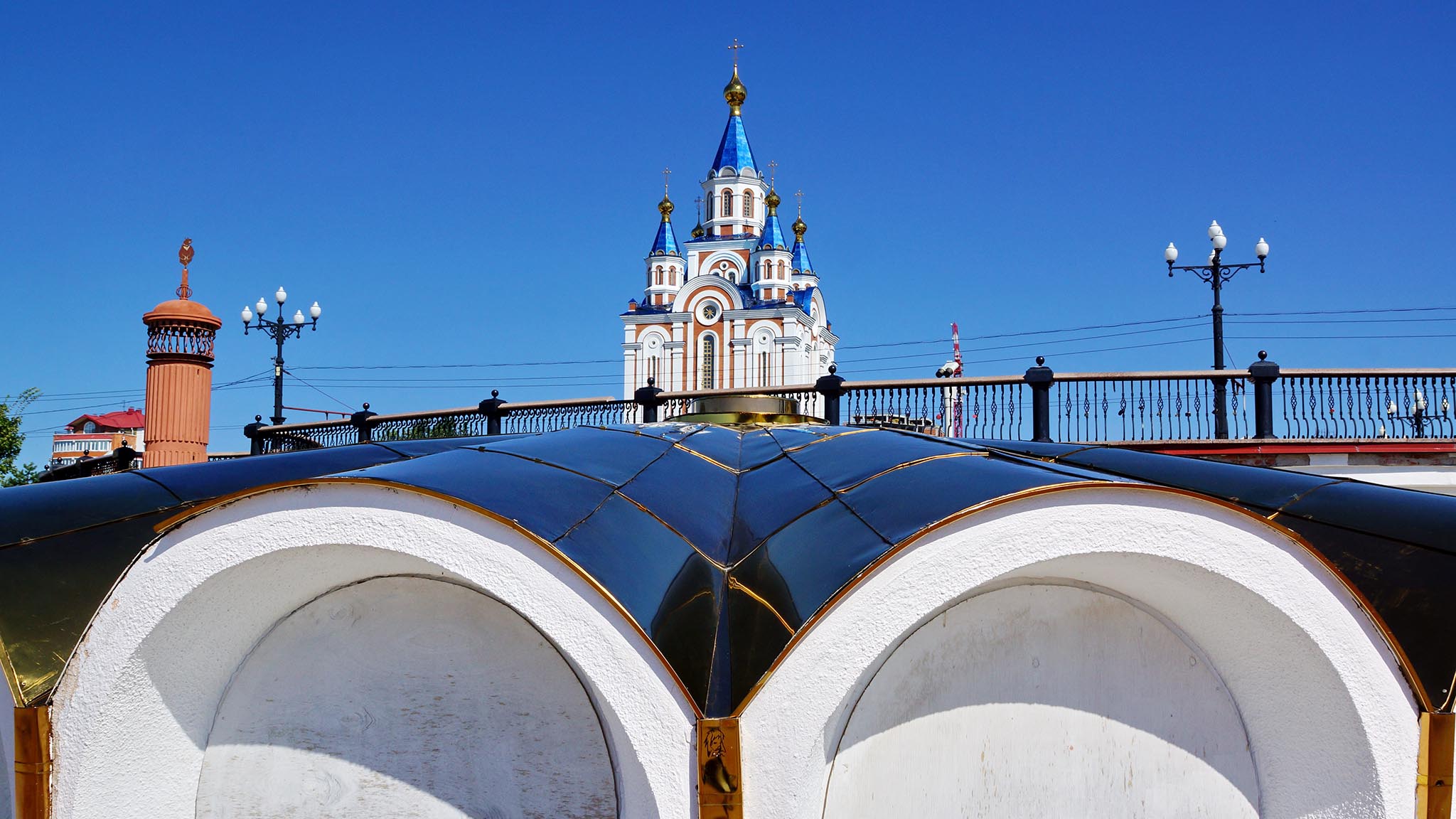 Не обойдите вниманием и городские храмы. Необычайно привлекателен Градо-Хабаровский собор Успения Божией Матери. Построенный в XIX веке, он стал первым каменным храмом города. В 1930-е его снесли, а в самом начале нынешнего столетия отстроили на прежнем месте по новому проекту. Стройный храм особенно красив вечером благодаря архитектурной подсветке. А Спасо-Преображенский кафедральный собор, расположившийся на площади Славы, считается одним из самых высоких зданий города. Вместе с куполами он поднимается на 83 метра. А высота храма с крестами достигает 95 метров.
