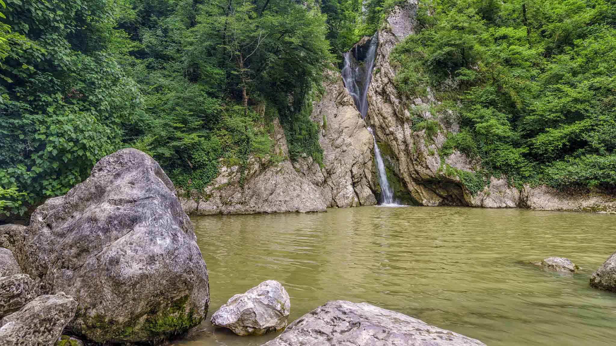 Путешествие по Агурскому ущелью запомнится надолго. Живописный маршрут пролегает вдоль реки Агура, что петляет между скалами ущелья. Ее бурные потоки и образуют знаменитые Агурские водопады. Горная тропа ведет сквозь тень редких реликтовых растений, дарующих приятную прохладу в жаркий день. Она выведет к озерцу «Чертова купель», куда срывается трехметровый водопад.