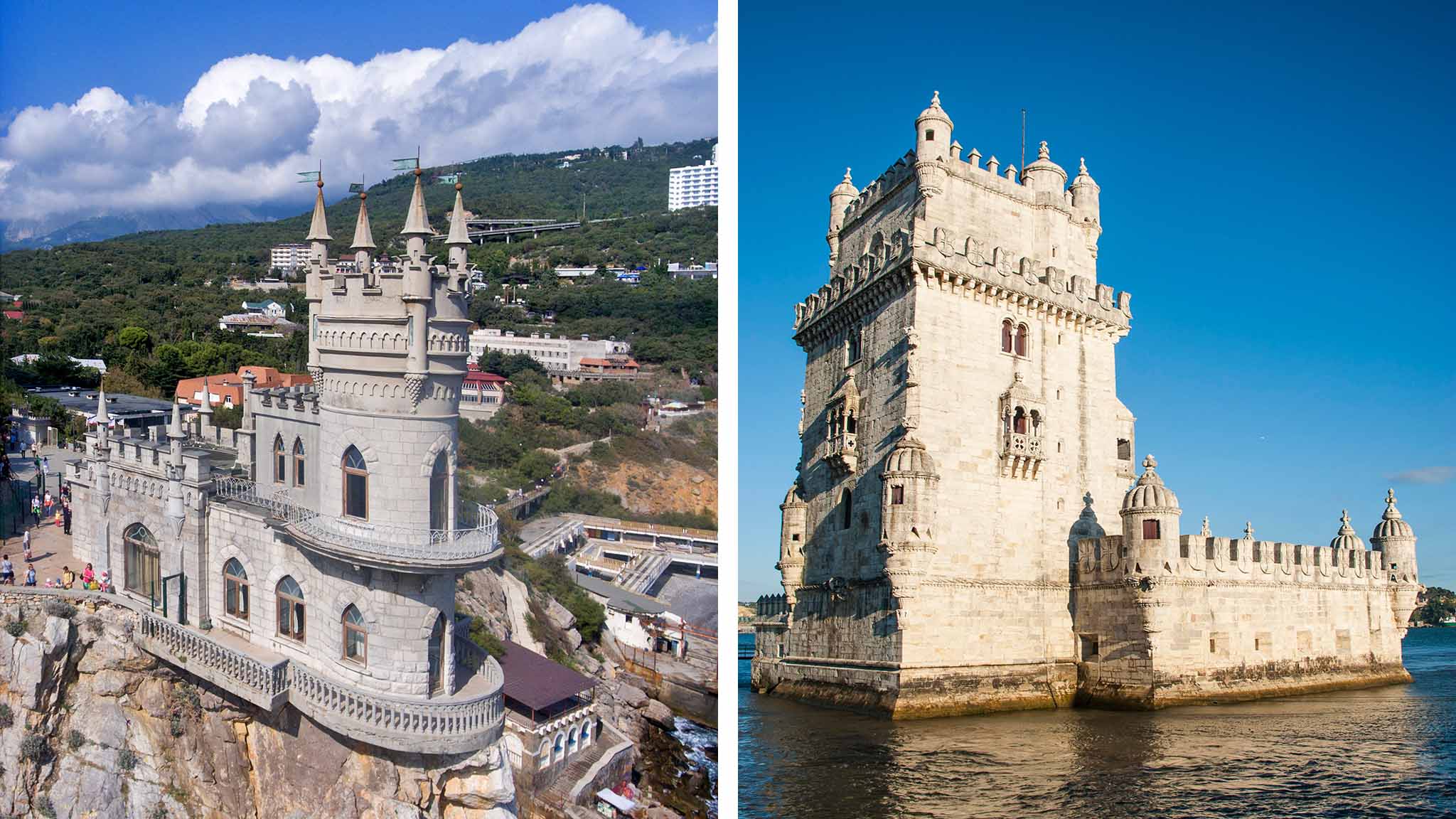 Четырехэтажная башня в Лиссабоне выглядит сказочно. Она строилась в начале XVI века для защиты от пиратов. Непрошенные гости с океана попадали под перекрестный огонь с бастионом другой башни на противоположном берегу. После землетрясения 1755 года цунами принесло горы песка и Торри-ди-Белен оказалась практически на суше. Позже ее стали использовать в качестве таможни, тюрьмы и маяка. Сейчас она входит в список семи чудес Португалии.