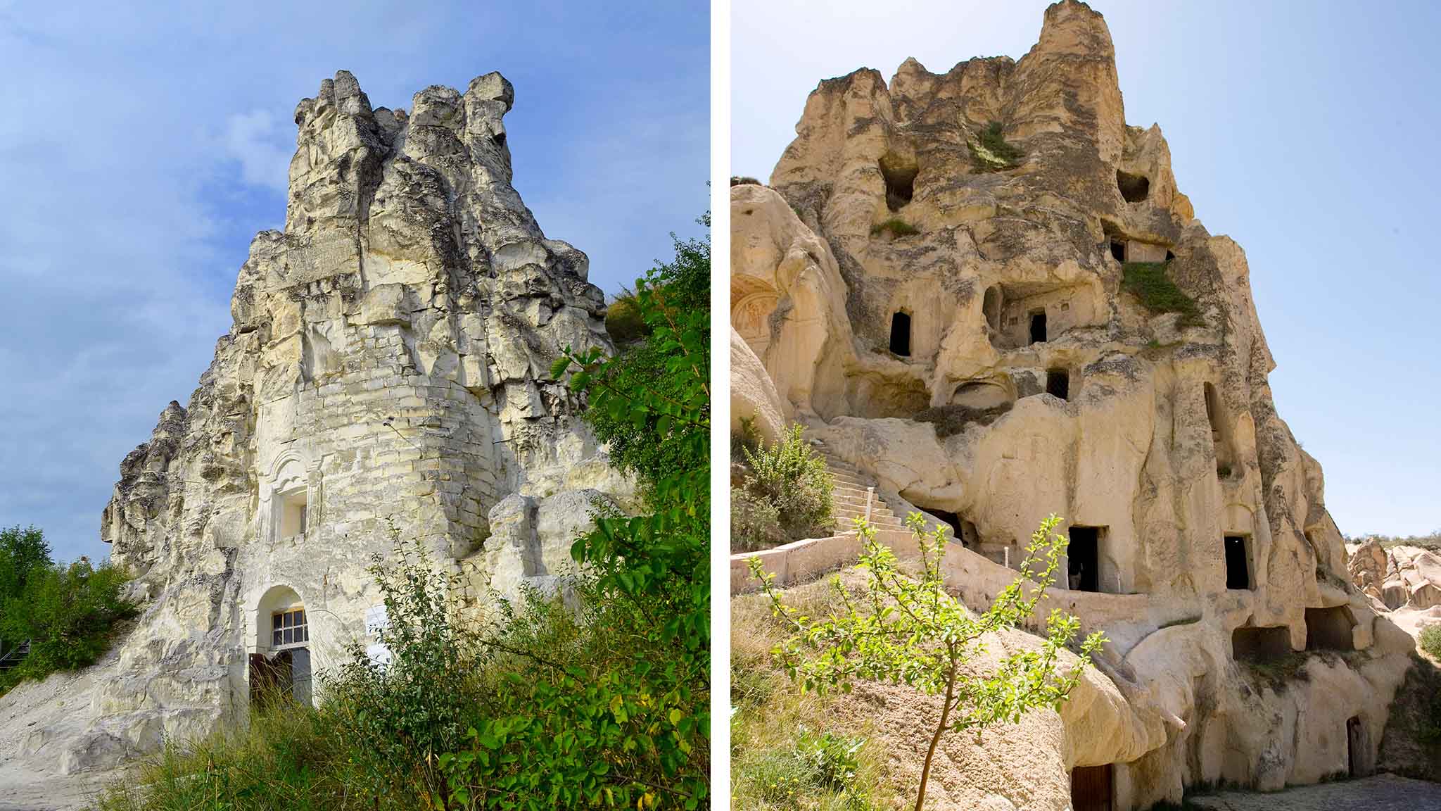 Каппадокия — уникальное место на территории Турции. В долине Гереме ветер и вода много тысячелетий вытачивали из мягкого вулканического туфа скалы причудливых форм. А люди высекли в них пещерные города и монастыри.