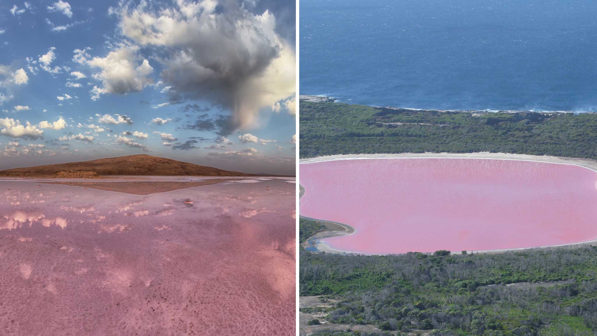 На австралийском острове Средний есть розовое озеро Хиллер (созвучно с английским словом «целитель»), где вода пахнет фиалками благодаря микроводорослям, вырабатывающим бета-каротин. Ученые проводили множество исследований и выдвигали разные гипотезы, пытаясь разгадать причину необычного цвета, но однозначного ответа до сих пор нет. Озеро окружено дюнами и эвкалиптовыми лесами. По утрам водоем приобретает цвет фуксии, в обед становится нежно-оранжевым, а к вечеру – сиреневым. Но увидеть озеро сложно даже местным жителям. Расположено природное чудо на острове, добраться до которого можно только на гидроплане.