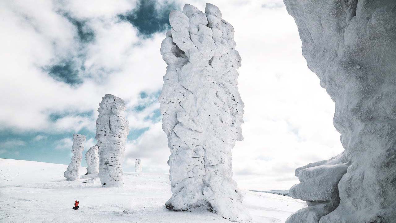Каменные истуканы в республике Коми — словно насмешка над физикой. Кажется, что высокие стройные останцы, сужающиеся внизу и расширяющиеся сверху, того и гляди упадут, стоит лишь ветру подуть чуть сильнее. Но эта хрупкость иллюзорна — столбы выветривания на плато Маньпупунер простояли здесь уже не одну тысячу лет, простоят наверняка еще столько же.