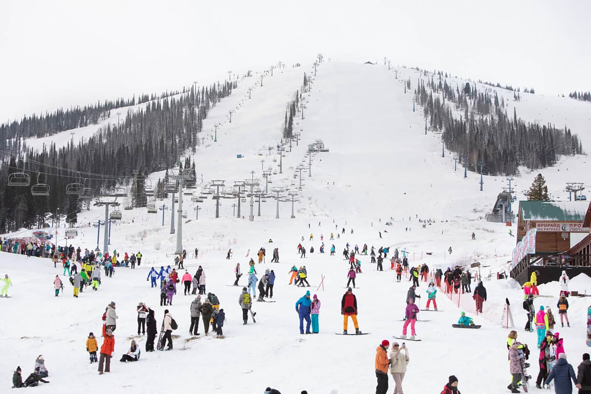Можно начать рассказывать, что в Шерегеше много молодежи, и именно она заряжает курорт своей энергией. Да, молодежи и правда хватает, но не меньше и вполне солидных взрослых компаний, что приезжают сюда много лет семьями. Еще одна причина — относительно низкий по сравнению с другими горнолыжками ценовой порог, который позволяет отдыхать без пафоса, не гоняясь за статусностью. Вспоминают и про особый сибирский менталитет — людям, привыкшим сообща справляться с суровыми морозами, быть замкнутыми буками климат не позволяет.