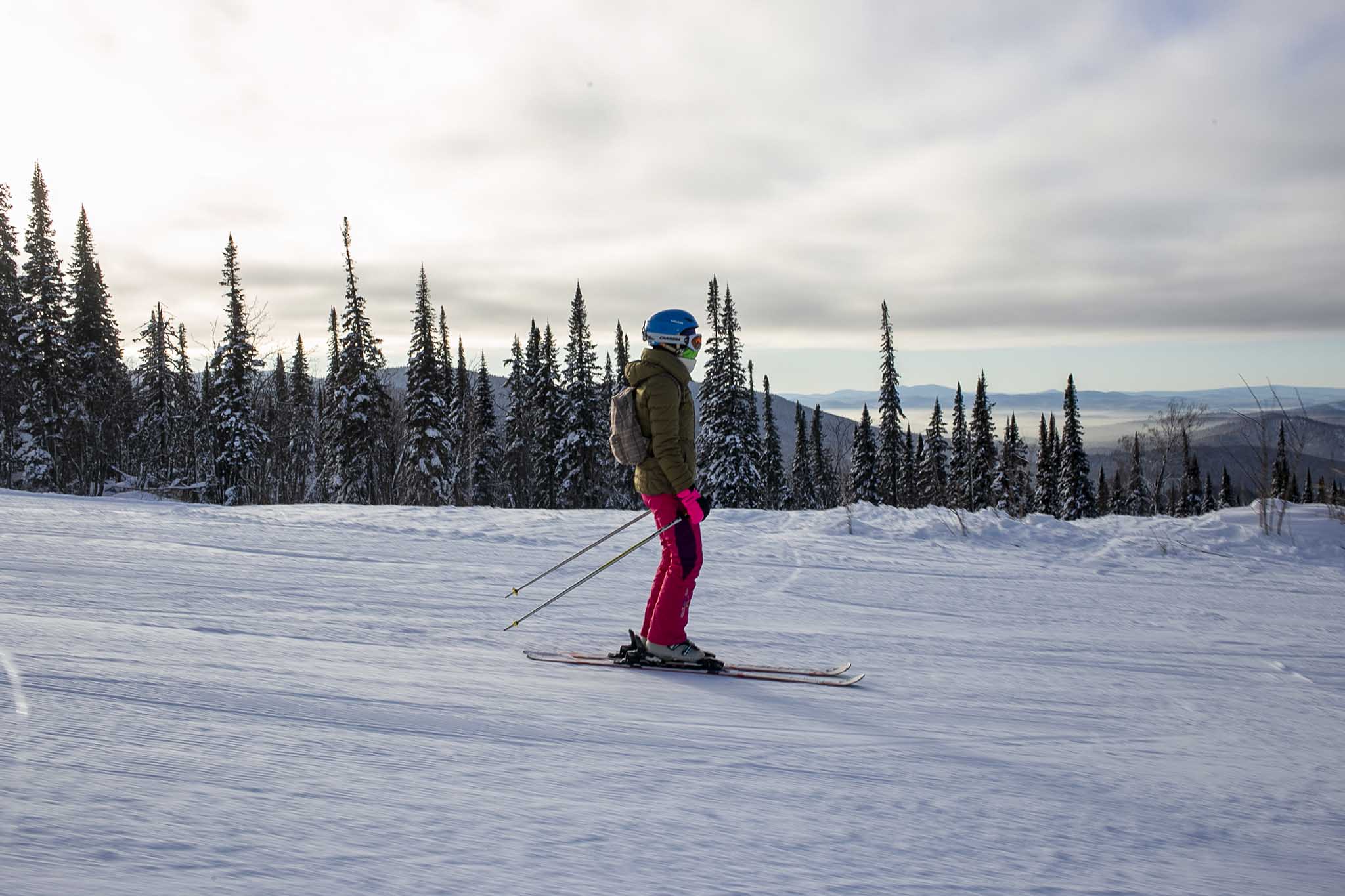 Особая структура снега здесь из-за географического расположения курорта, укрытого среди тайги. Поэтому в этой местности еще и практически никогда не бывает очень сильных ветров и лавин, вековые таежные сосны создают естественный барьер для схода снега.