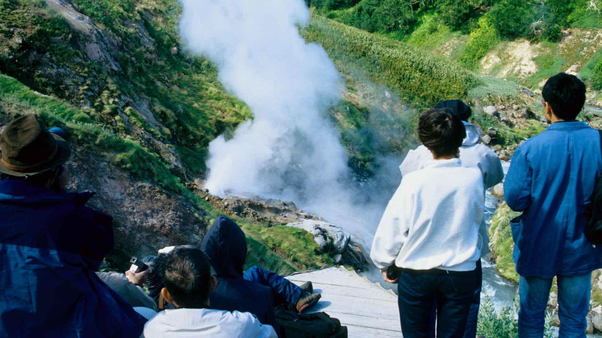 Горячие фонтаны бьют вверх несколько раз в день, окутывая паром поверхность земли рядом. Удивительно, что, несмотря на температуру горячих источников (некоторые из них выше +90 градусов), даже зимой в нескольких метрах от них лежит снег.