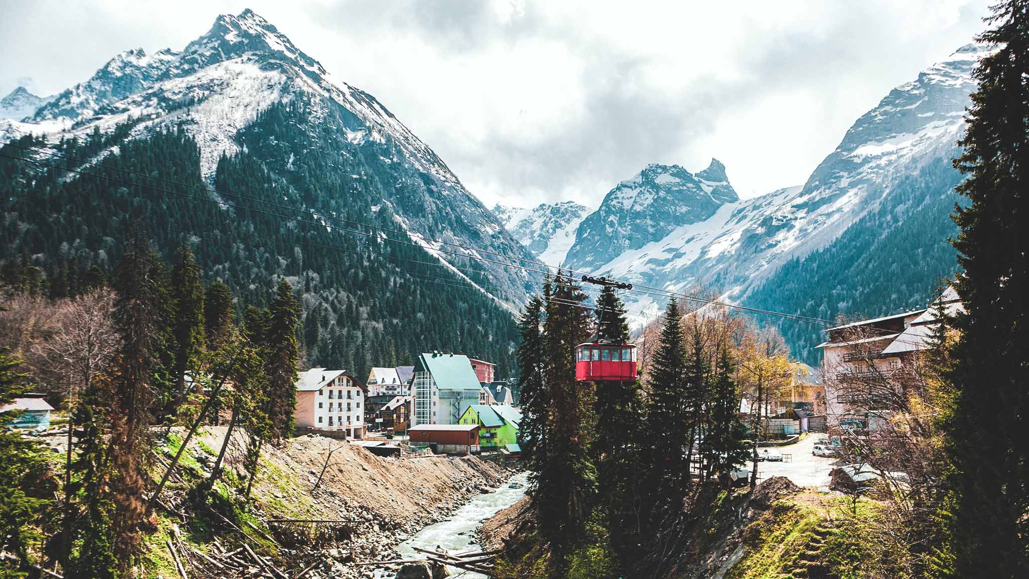 Обязательным аттракционом всех туристов Домбая является подъем на вершину горы Мусса-Ачитара, где оборудованы горнолыжные склоны. Подъем происходит по трем канатным дорогам.