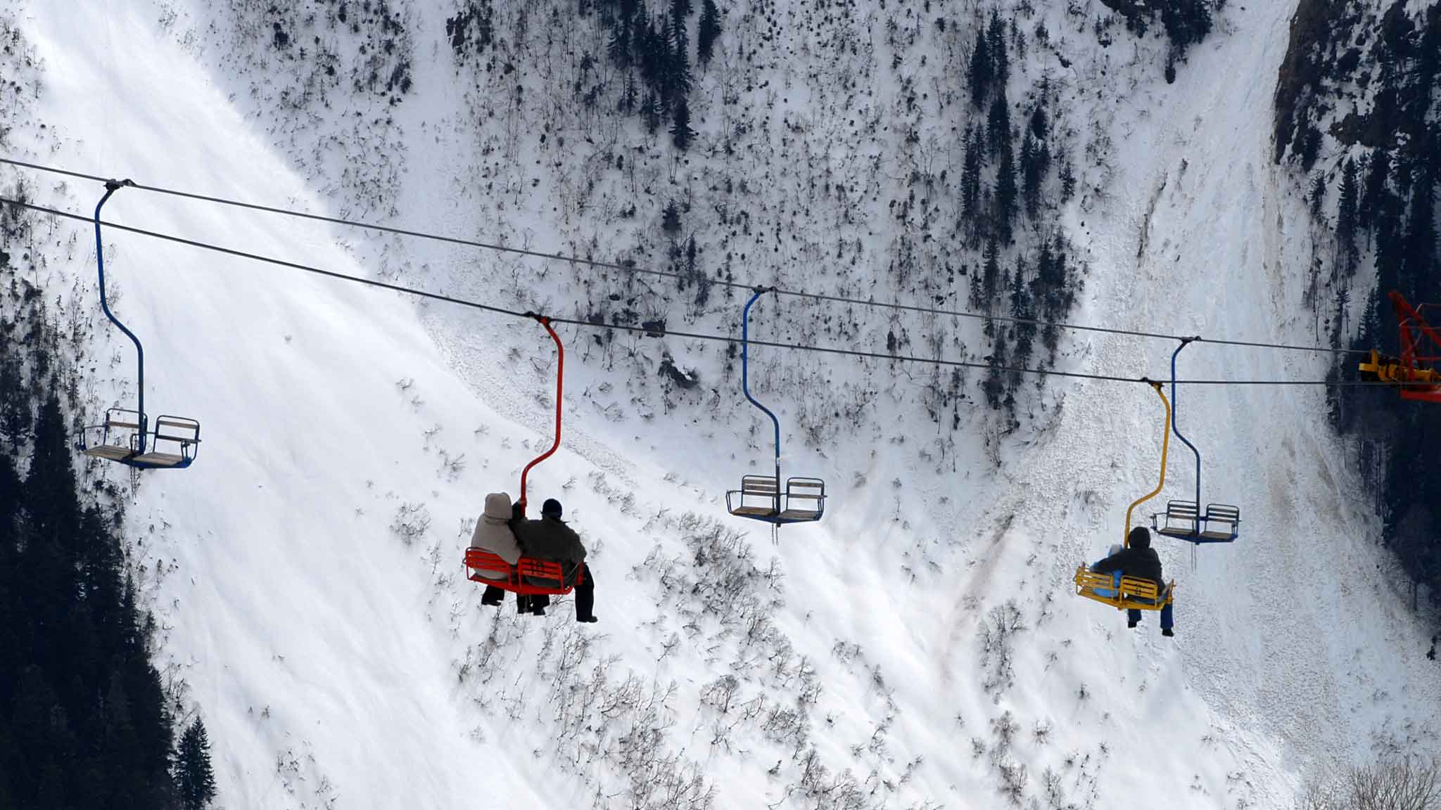 Первый подъемник закрытого типа ведет на высоту 2277 метров, здесь еще не очень холодно, но уже более прохладно, чем на поляне. Вторая очередь кресельного открытого типа поднимает на высоту 3000 метров, там намного холоднее, но спасают кафе с горячими напитками и пледы на прокат. Некоторым туристам уже здесь достаточно впечатлений. Самые устойчивые поднимаются на высоту 3200 метров на третьей канатке, тоже открытой, но надо быть тепло одетым, чтобы преодолеть это расстояние. На самой вершине нет кафе, только смотровая площадка.