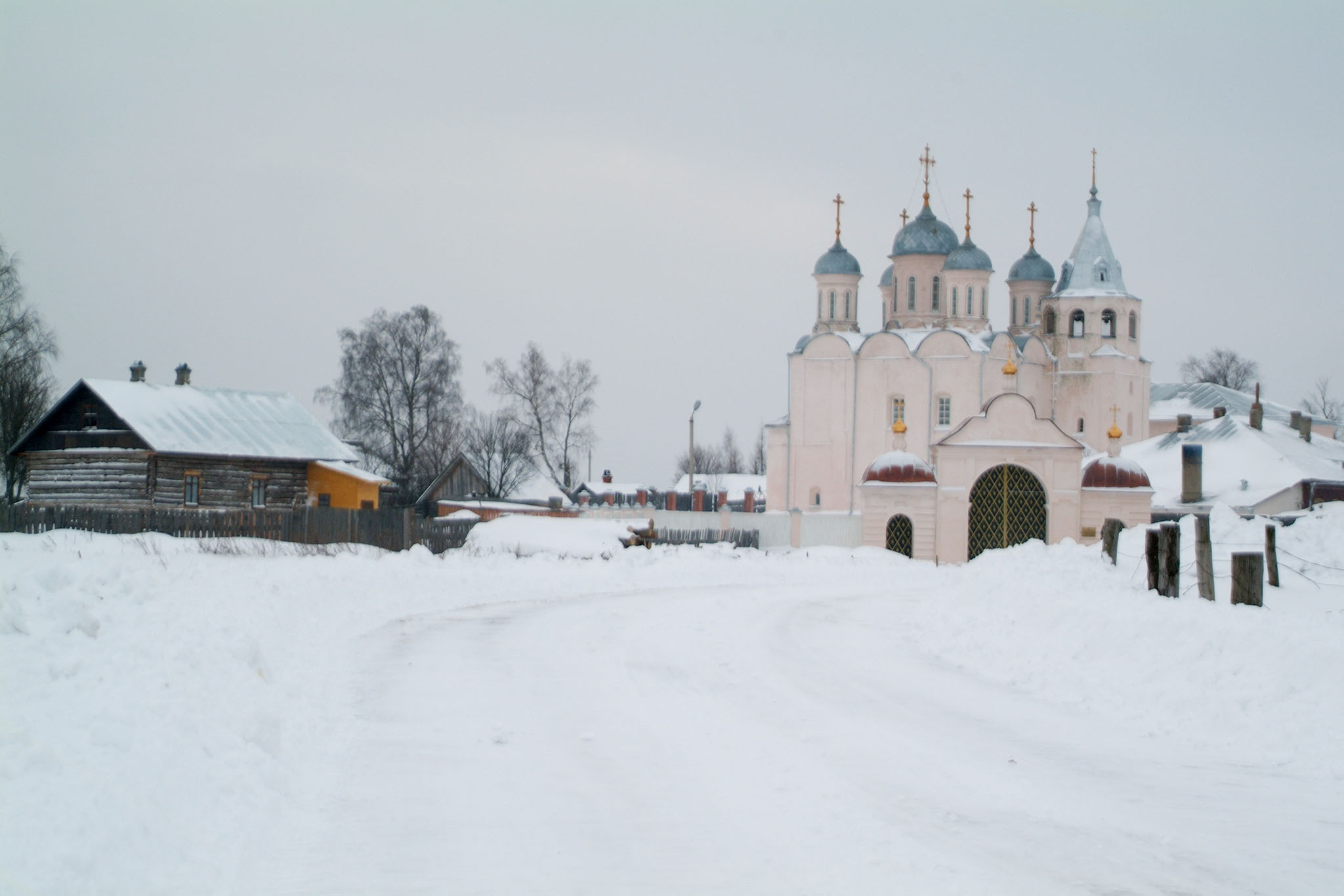 В Суздале сочетается деревянное и каменное зодчество: можно увидеть покрытые снегом кремлевские валы, огни монастырей и старые купеческие дома.
