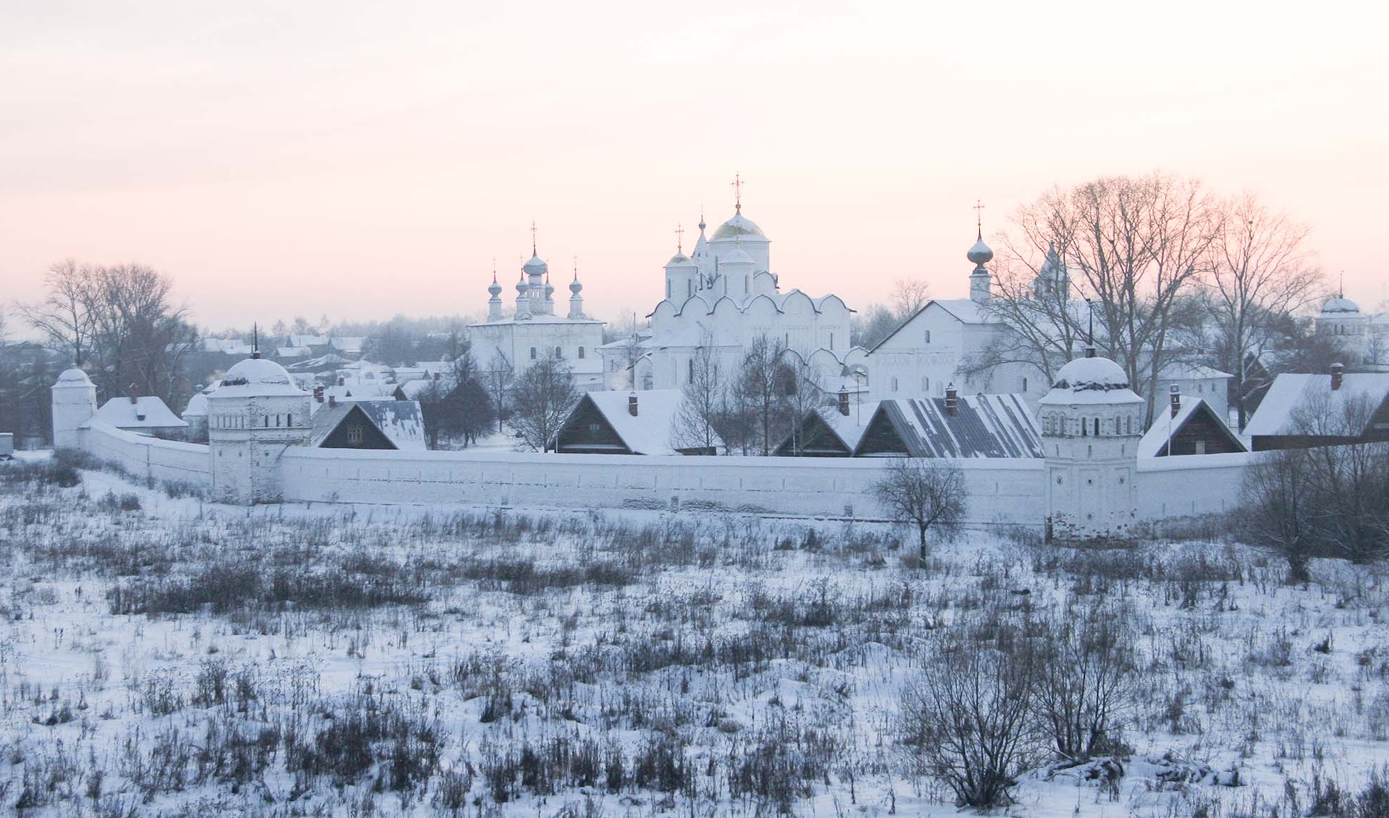 Зимой путешественники в Суздале любят кататься на санях по историческим улицам мимо заснеженных теремов и старинных церквей. На Торговой площади в новогодние дни работает праздничная ярмарка, на которой можно продегустировать и купить огуречное варенье, медовуху, сбитень, крендели и другие вкусные десерты.