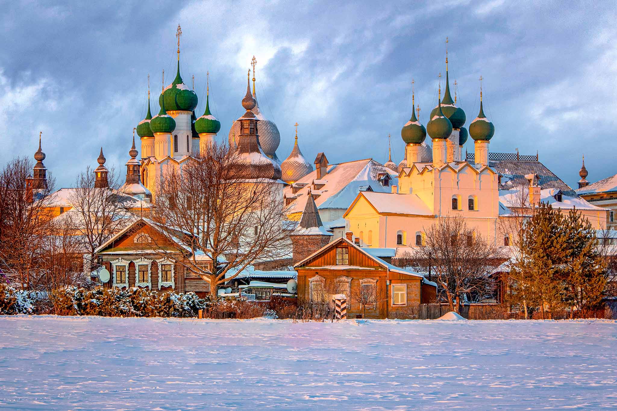 Зимний Ростов Великий встречает гостей заснеженными куполами церквей, нарядно украшенными улицами со старыми купеческими домами. Туристы посещают храмы, Красную и Белую палаты Ростовского кремля, возведенного в XVII веке, гуляют по Митрополичьему саду. На площадке перед Ростовским кремлем разворачивается оживленная новогодняя ярмарка, где продают игрушки, сувениры, сладости и горячие напитки. В музее «Ростовская финифть» проводятся мастер-классы по росписи посуды, а в музее «Царевна-лягушка» — праздничные интерактивные игры.
