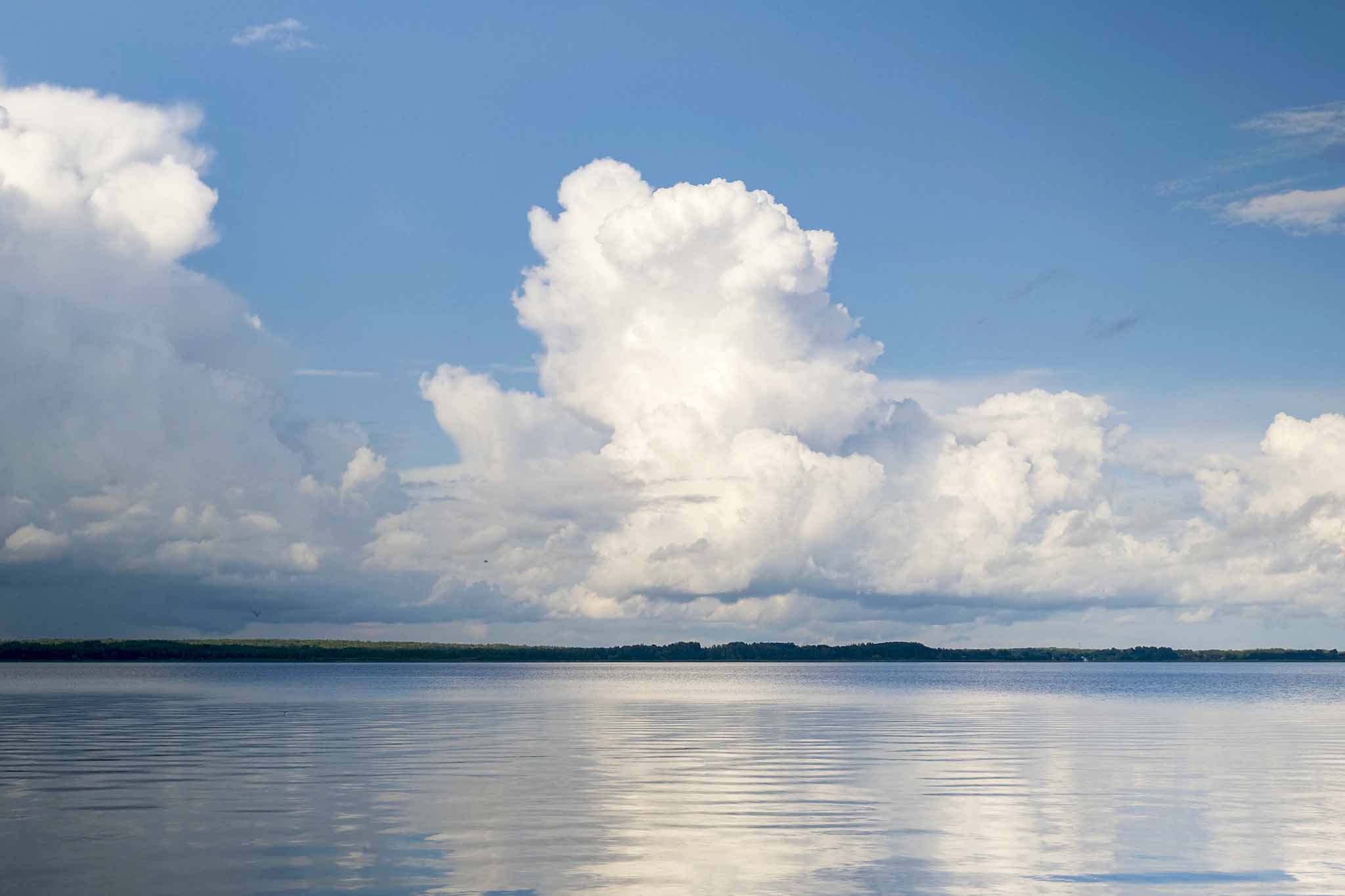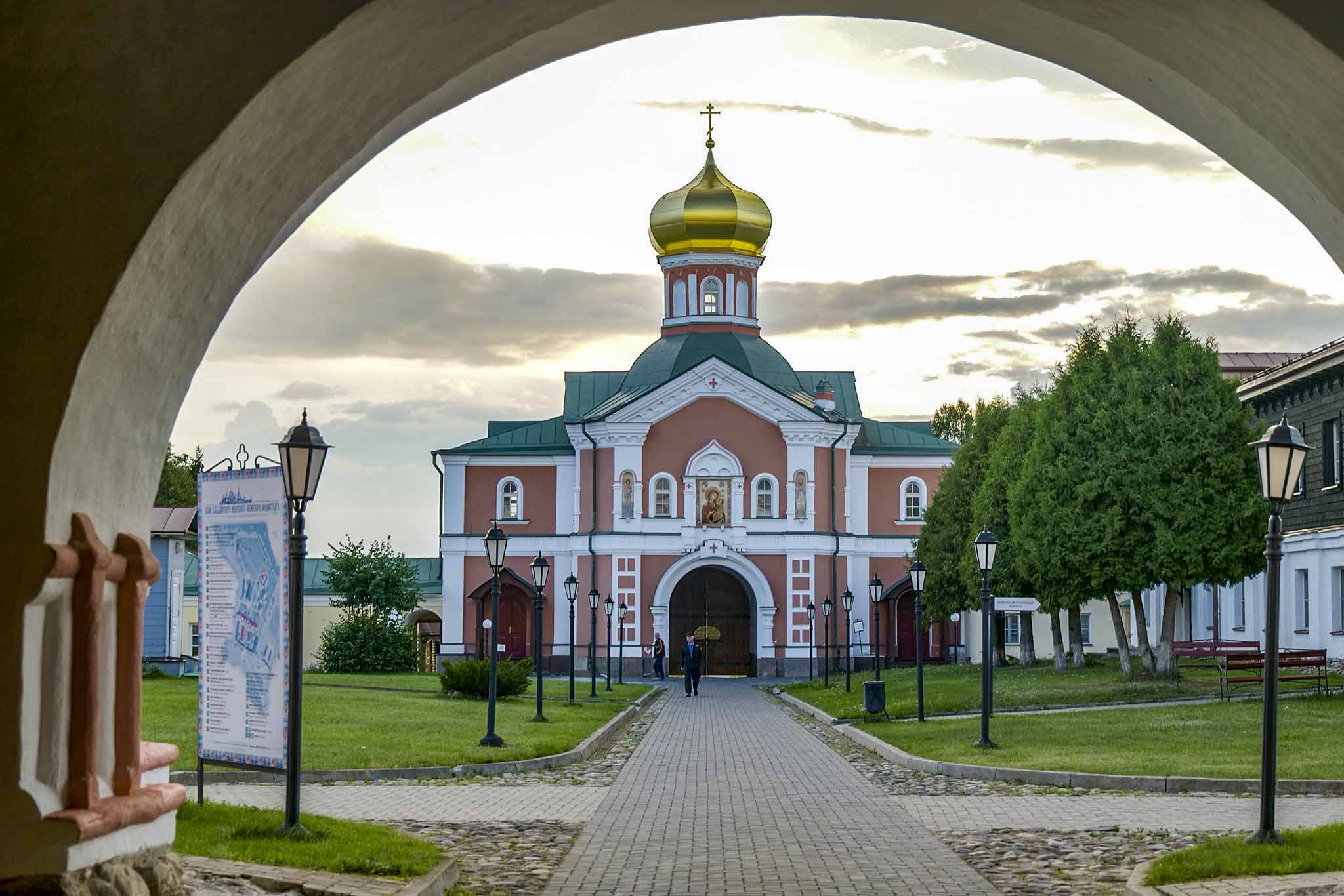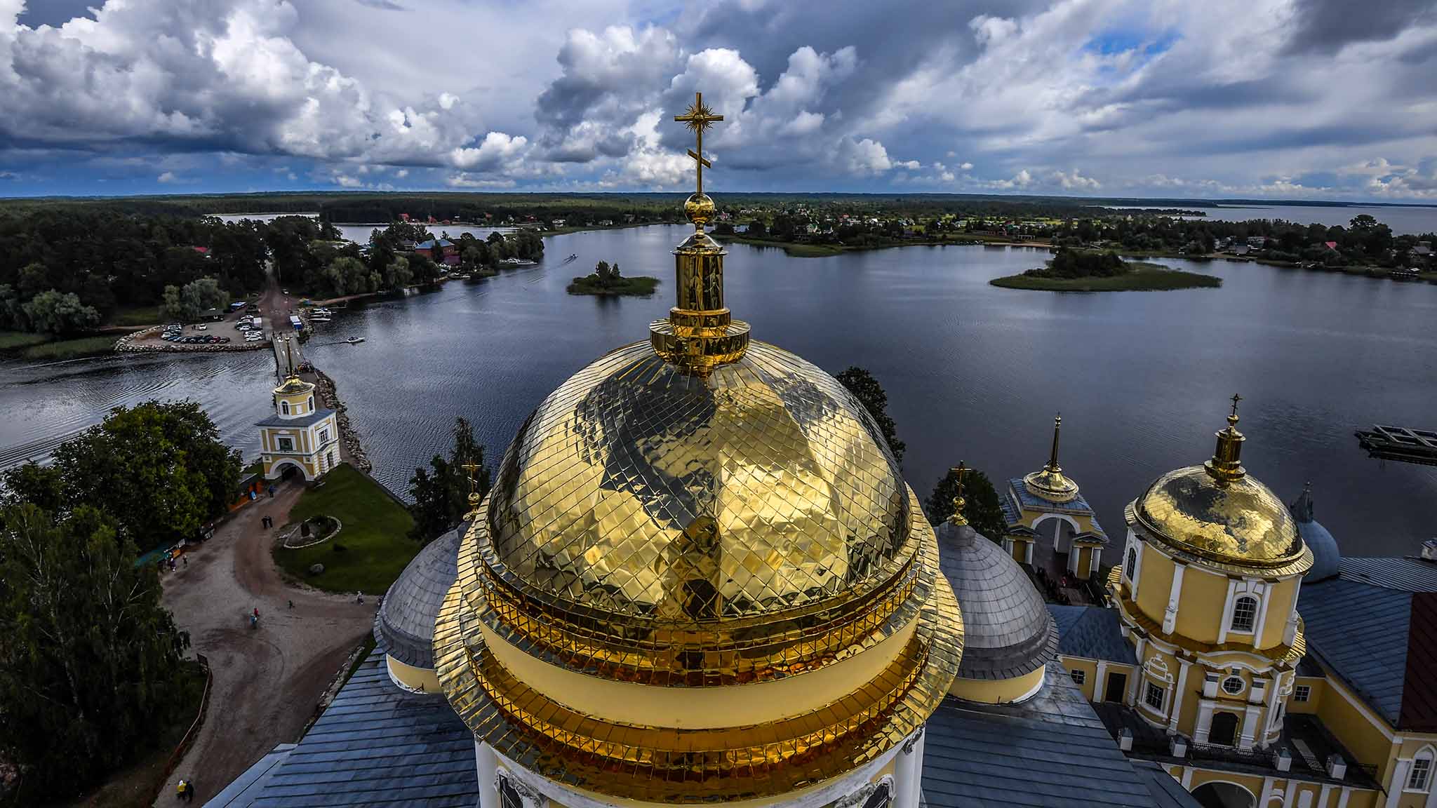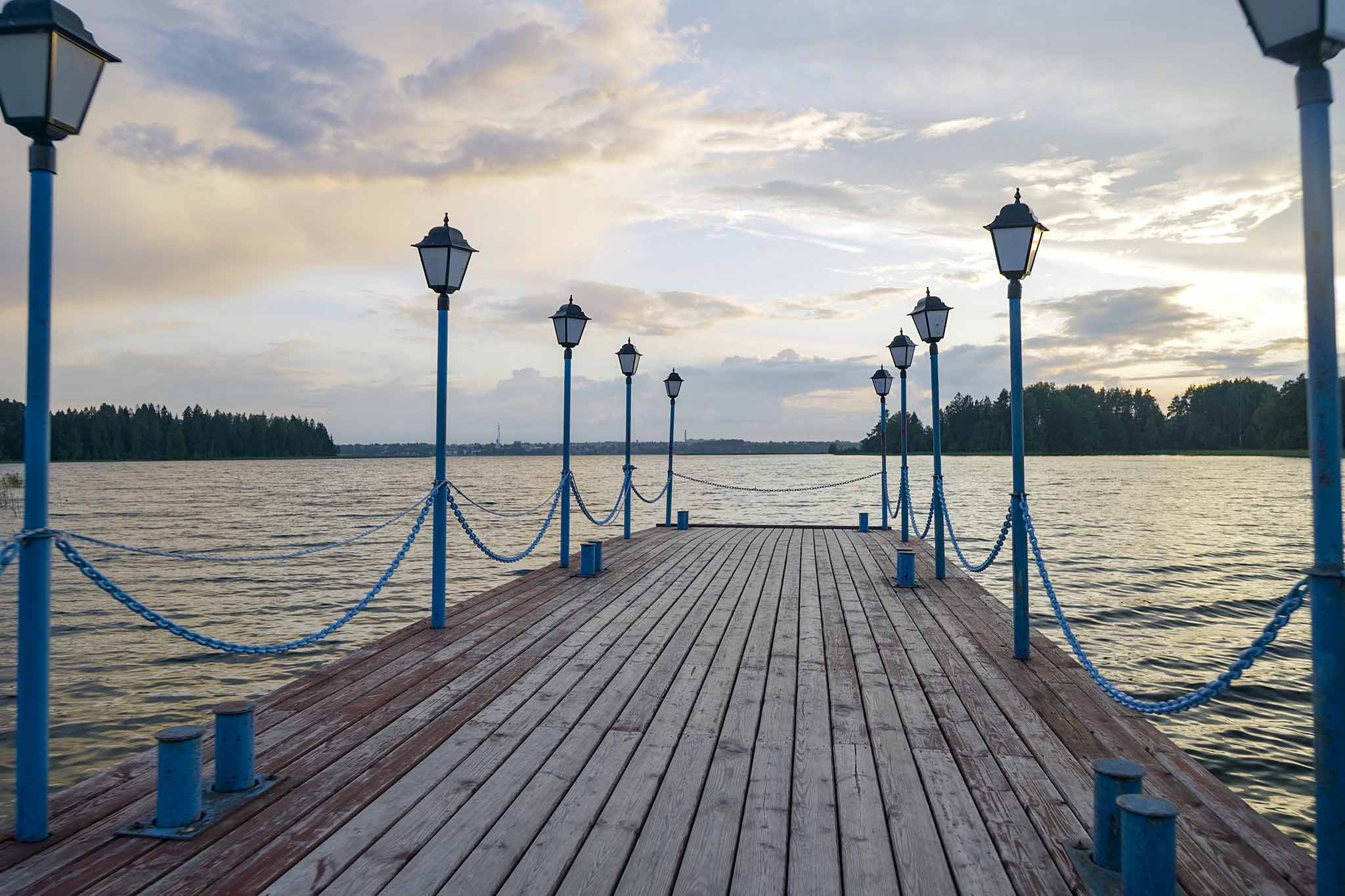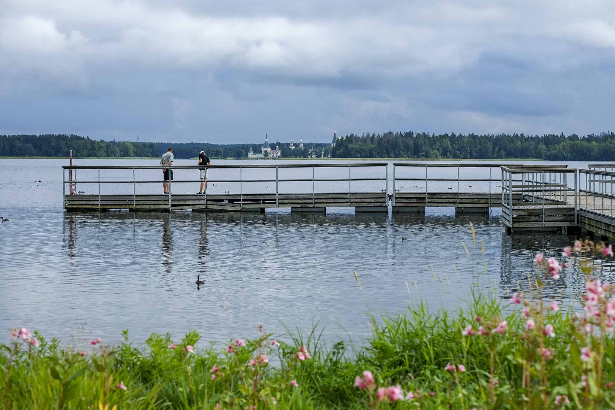 И вид отсюда, с пирса, был просто нереальный. Открыточный: безграничное небо в отражении озера. А на другом берегу, где полоска изумрудного леса, на передний план выплывали колокольни и храмы старинного монастыря.