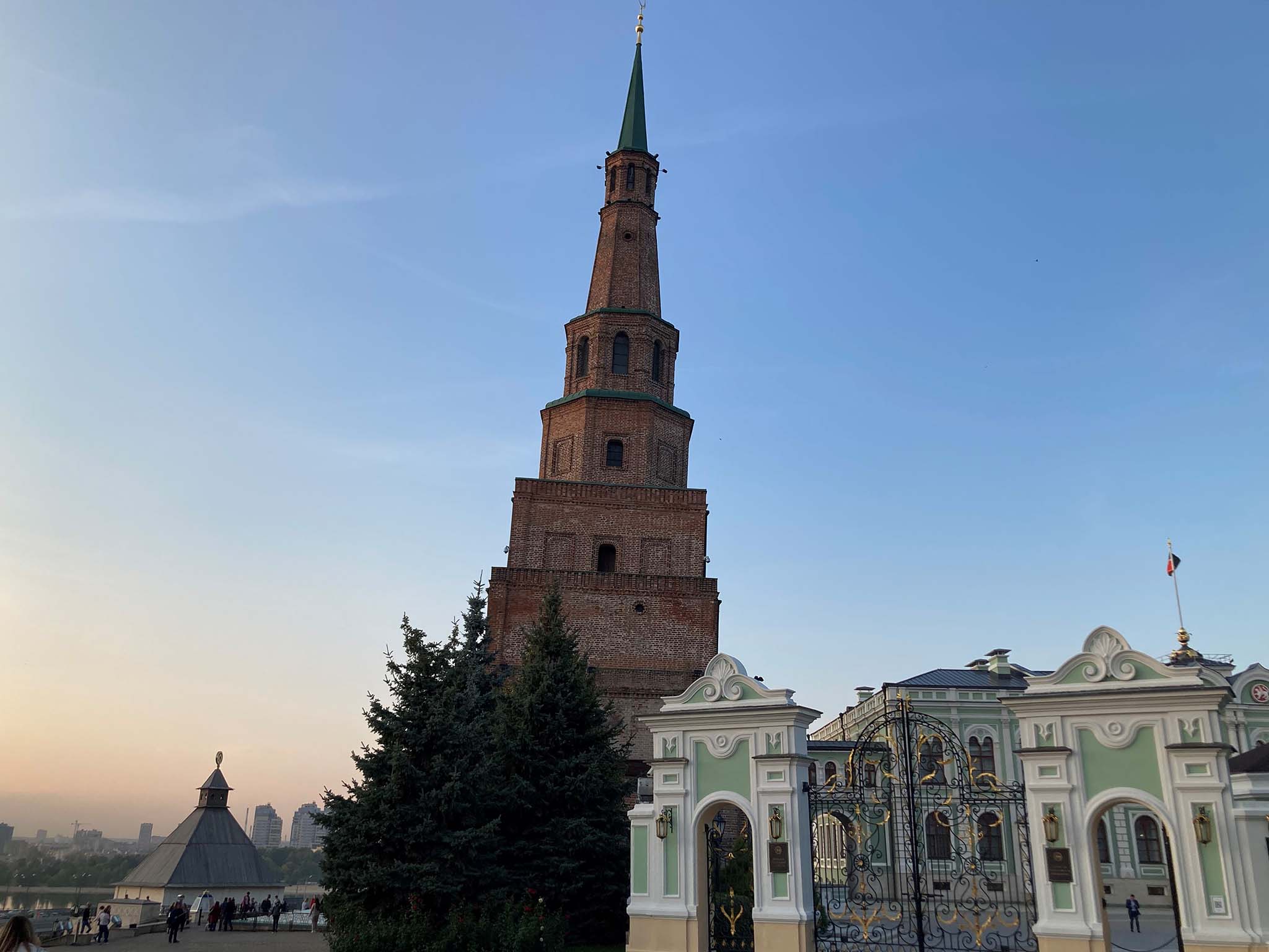Кстати, москвичам башня может показаться смутно знакомой. Действительно, у нее есть «младший брат» в столице. Здание Казанского вокзала повторяет архитектуру татарской достопримечательности — семь ярусов и острый шпиль. Но визуальный стиль двух построек отличается, да и «падения» шпилю вокзала пока удается избежать.