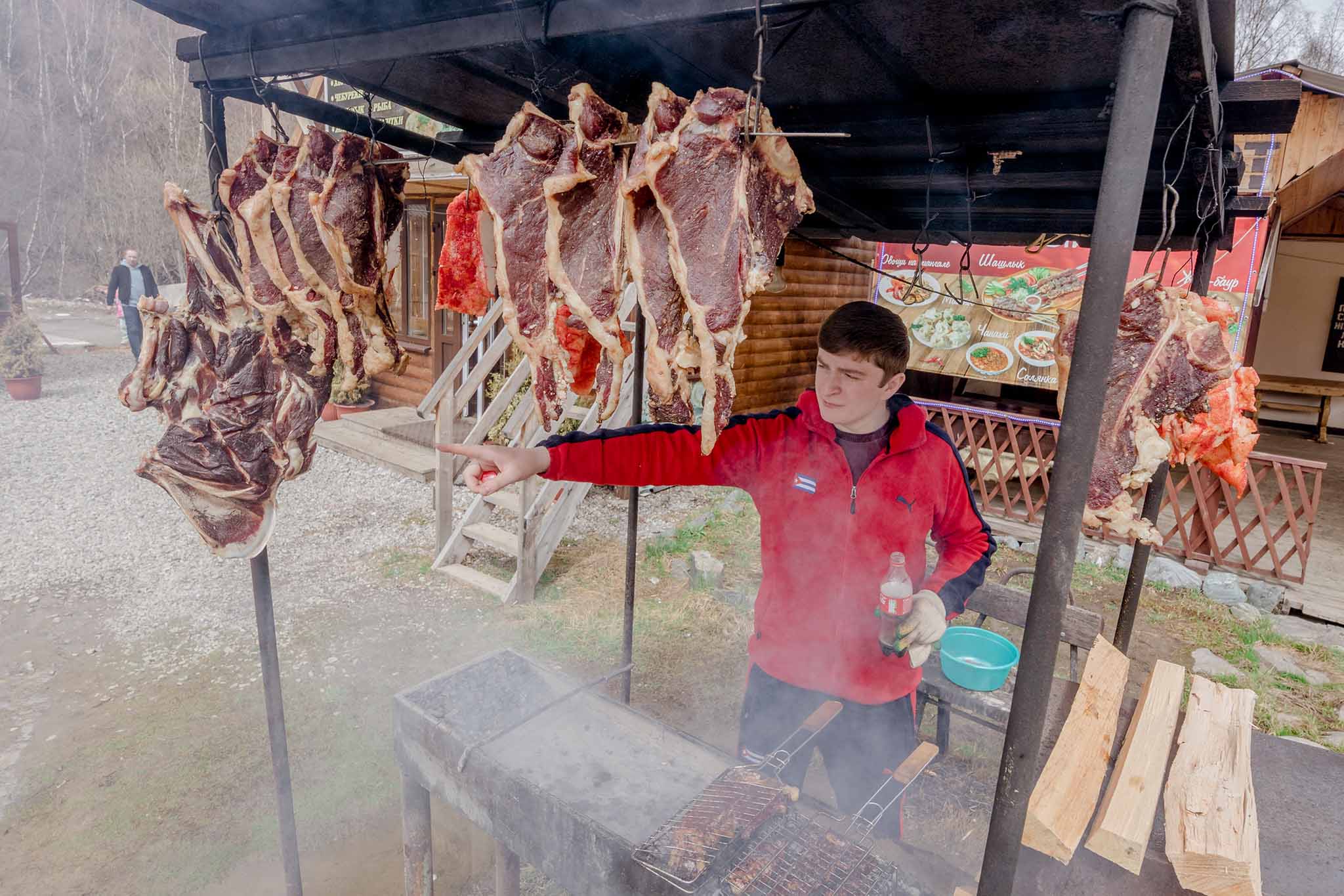 Главная еда — мясо. Оно здесь прекрасно. Я попросил показать мне в Нальчике рынок. Только не туристический, какие есть в каждом городе. Хорошо, уважаемый, сказали мне и отвезли на рынок «Дубки» в районе Вольный аул. Там можно часами бродить по мясным рядам, вдыхать ароматы свежей баранины, с завистью поглядывать на тушки кур с золотистой кожицей — в Москве таких нет.