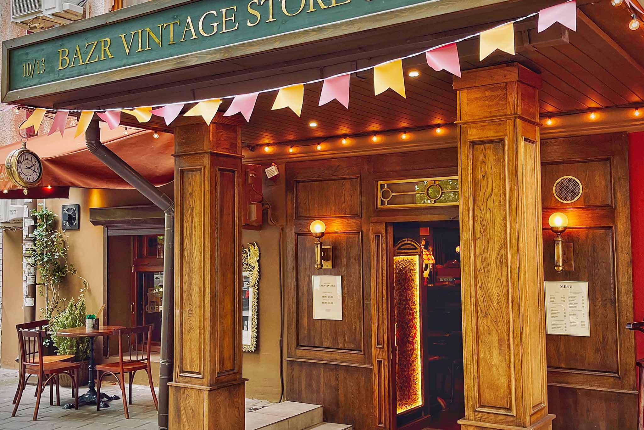 Совершенно неожиданное для Нальчика место — кофейня Bazr. Это прямо как портал в другое измерение. Снаружи — Кабардино-Балкария, внутри — средневековая не то Англия, не то Фландрия. Антикварная мебель, посуда, зеркала. Над кожаным диваном гобелен, на стенах старинные портреты в рамках.