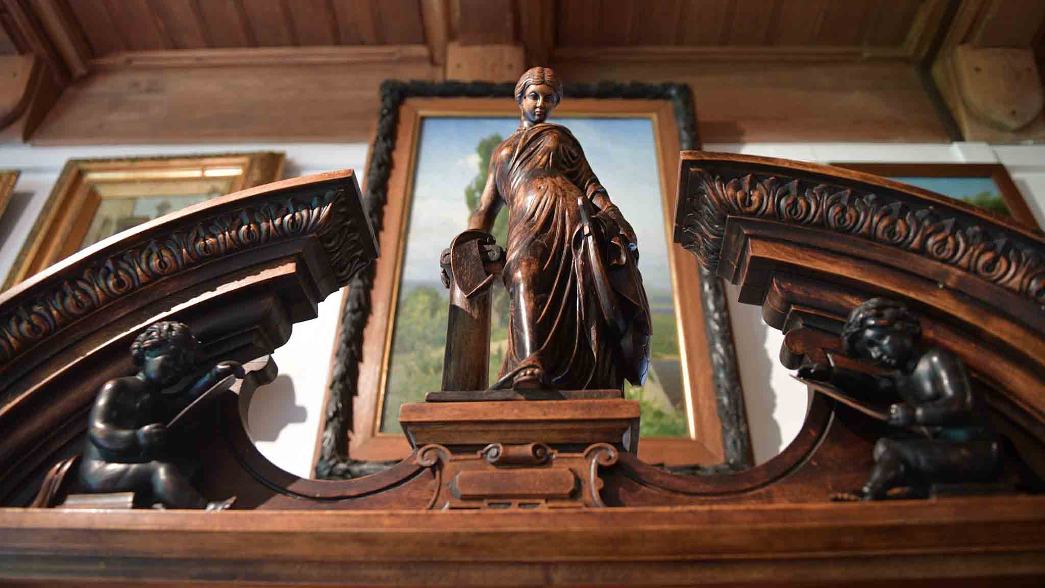 Такие же довольные, как те первые зрители, мы перемещаемся в Большой дом — первый, который Поленовы начали строить в этом месте в 1891-м. Через год семья уже въехала в него вместе со своими древними коллекциями, привезенными из Египта (например, жуки из саркофагов, старинные подсвечники), Греции (обломки старинных скульптур), картинами передвижников, китайскими матрешками, которые подарила жена Саввы Мамонтова… Они с Поленовым очень дружили, встречались то здесь, на Оке, то в знаменитом мамонтовском Абрамцеве. Там Василий встретил будущую жену. Наталья Васильевна тоже рисовала, но после замужества увлечение это оставила, посвятив себя семейным и общественным делам. Вместе с Поленовым строила школы для крестьянских детей в ближайших деревнях, открыла в одной из них театральный зал и стала первым режиссером.