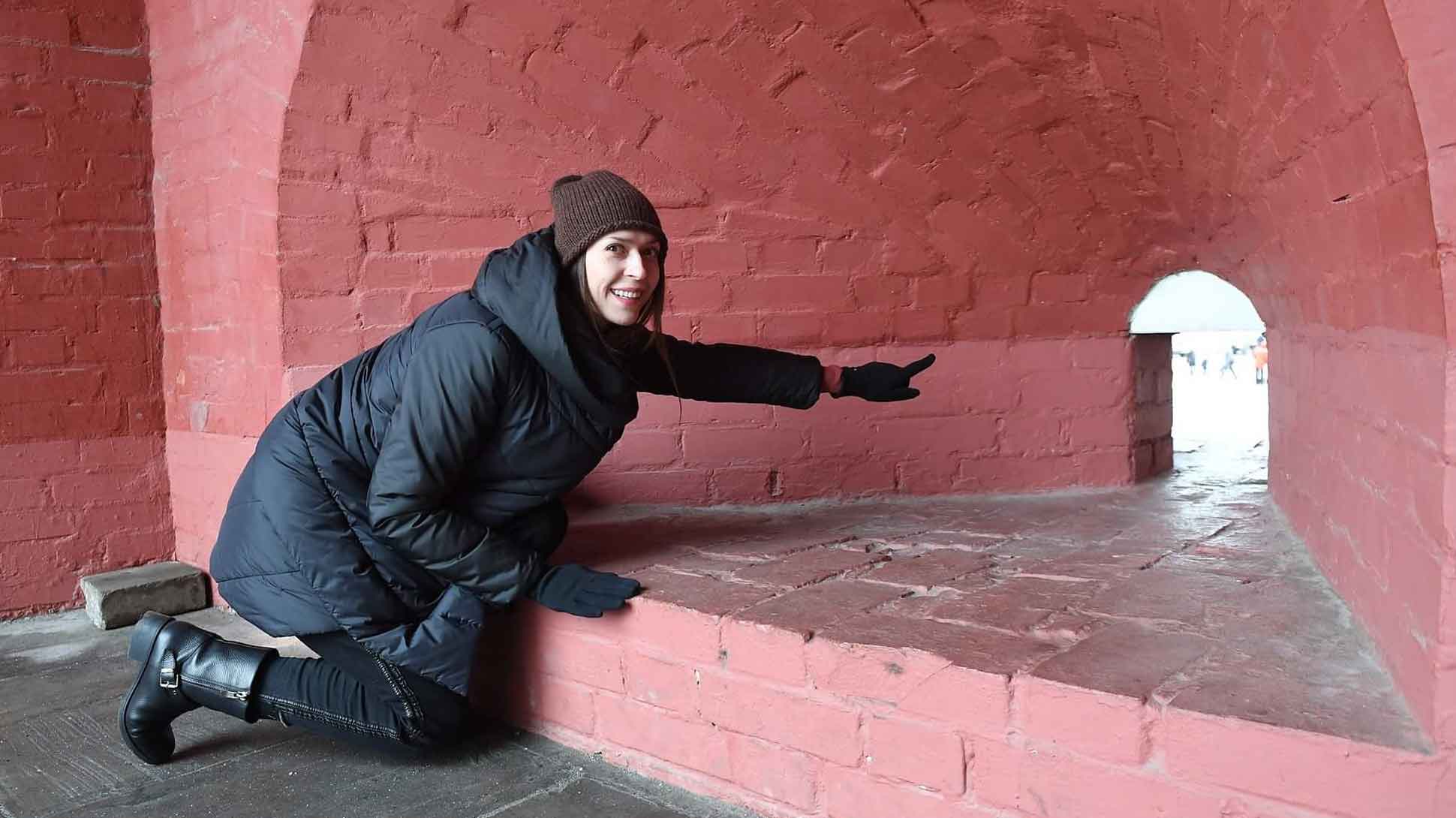 Однажды я шла с Красной площади к «Охотному ряду», как вдруг в Воскресенских воротах заиграл яркий луч солнца. Подхожу ближе, а там внизу дырка – нет нескольких кирпичей. Я встала буквально на коленки. Пока смотрела через дырку на Манежную площадь, подумала, что ко мне сейчас подойдут люди в форме и скажут: «Пройдемте, гражданочка». Пока не подошли, я обежала Воскресенские ворота, снова упала на коленки, посмотрела через отверстие на Красную площадь – вид уникальный. Быстро сделала фотографии и убежала в метро с мыслью: «Вдруг сегодня кирпичи отодвинули для какой-то особенной миссии, а я успела зафиксировать дырку в Кремле?» Но отверстие там есть всегда, просто никто не обращает внимание.