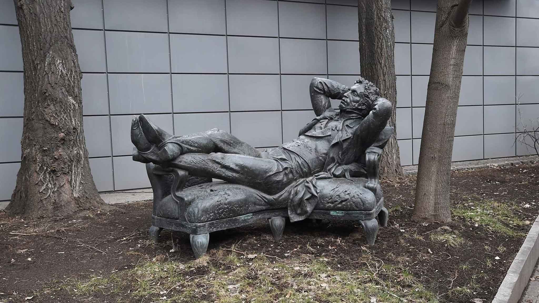 На Арбате есть музей-квартира Александра Пушкина, еще и памятник – он с Натальей Гончаровой. Но в интернете мне как-то попался еще один Пушкин – отдыхающий. Александр Сергеевич лежит на кушетке, закинув руки за голову. Смотришь на него, а он явно погружен в собственные мысли, его не тревожат никакие проблемы.