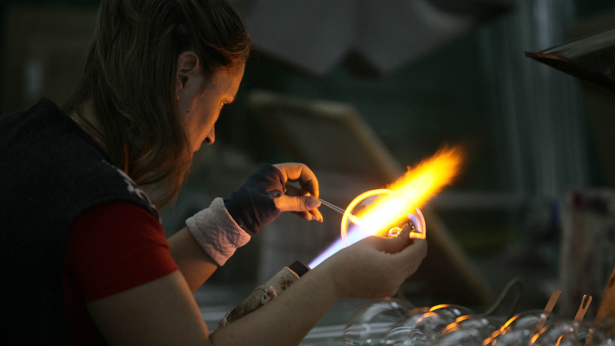 Мастерская елочных игрушек «Рождественское яблоко» возрождает древнее стеклодувное искусство и круглый год создает необычные украшения по старинным технологиям.