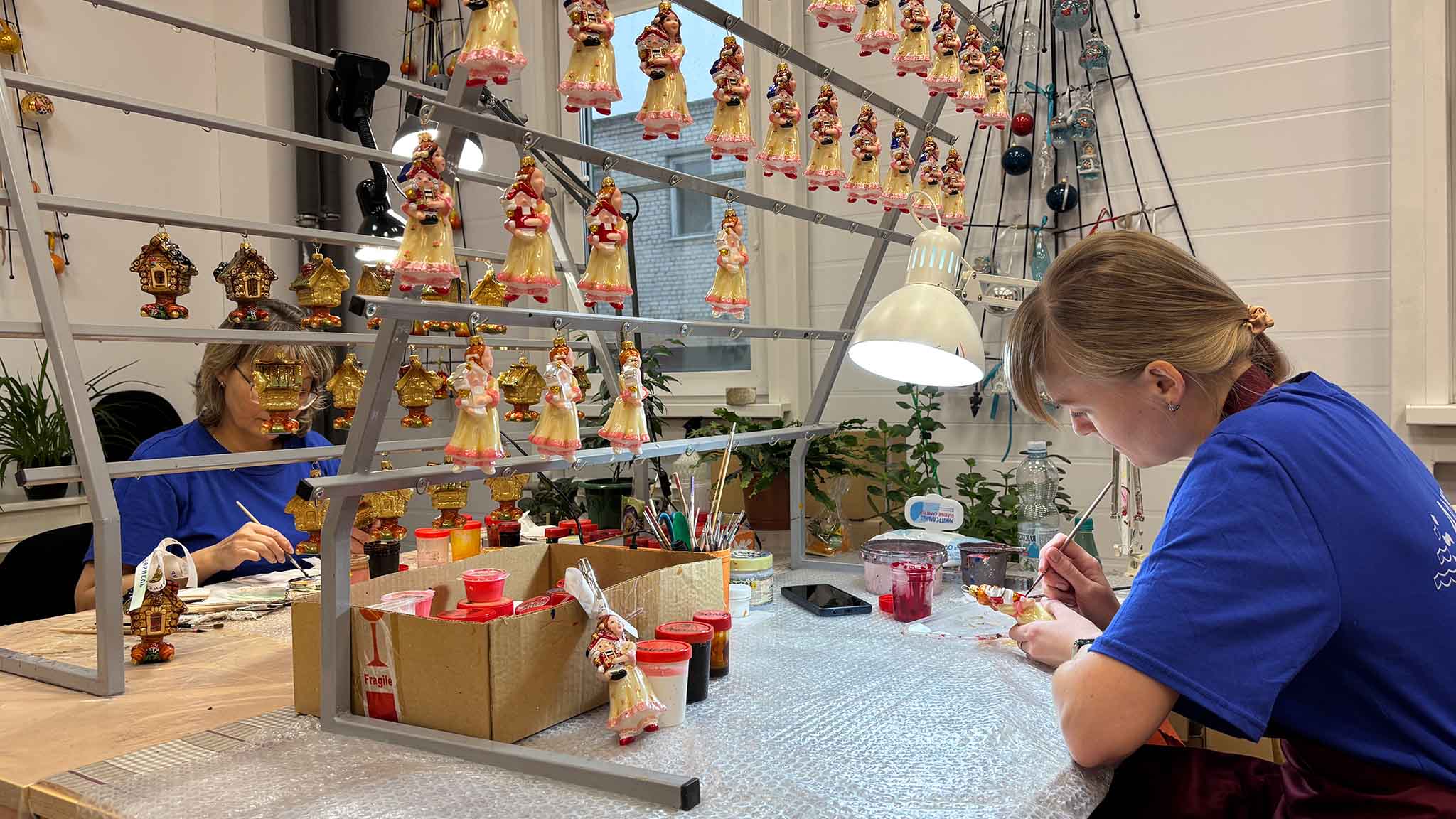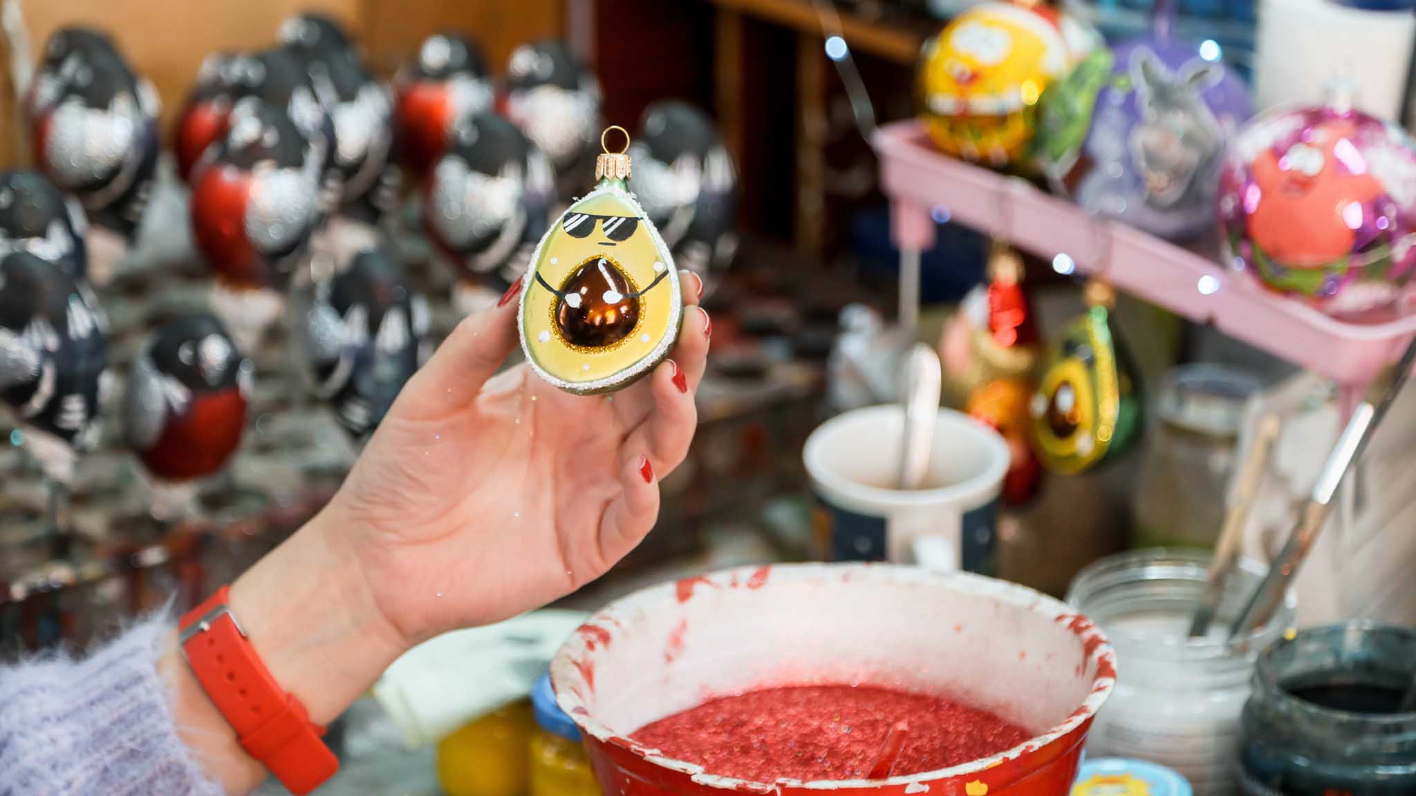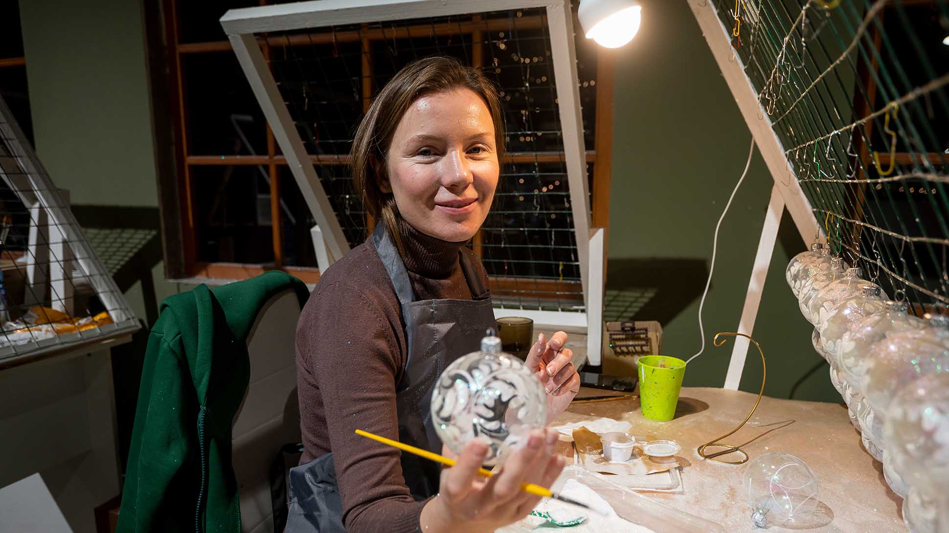 Здесь живут традиции и приобретают формы новые задумки — мастерицы трудятся каждый день, расписывая игрушки. Стеклодувы делятся секретами ремесла, а художники творят настоящий шедевр для праздничной елки.
