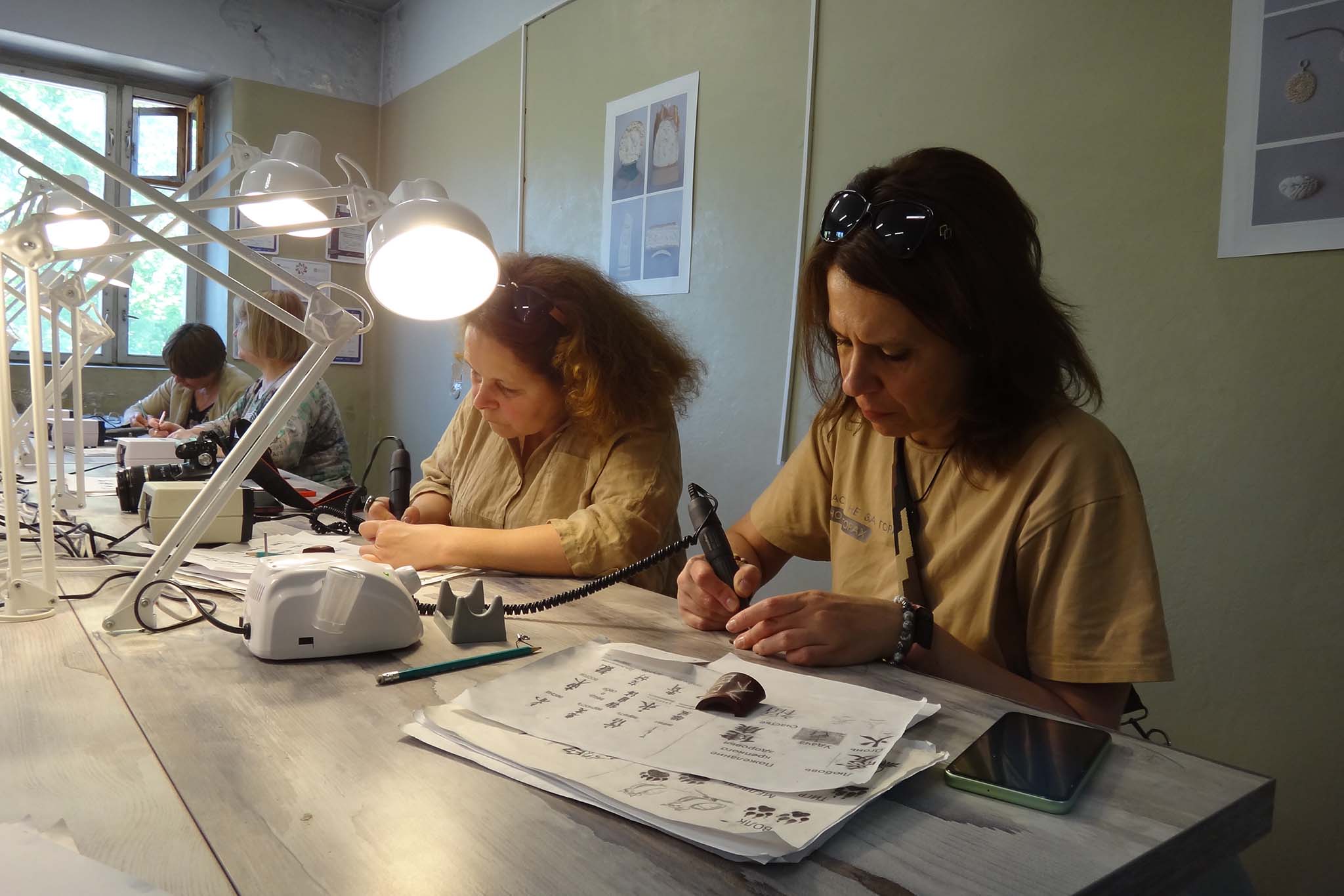 — Ну что, попробуем? — нас привели в зал для мастер-класса. Вручили бумажку, карандаш, чтобы рисовать эскиз, для особо одаренных — пачку уже готовых рисунков (только копируй!), кусочек коровьей кости (бивень мамонта — слишком дорогое удовольствие, не для таких «умельцев») — и вперед. С напряженными лицами, криво-косо, но с большим удовольствием мы вырезали ювелирной бормашинкой невнятные завитушки.