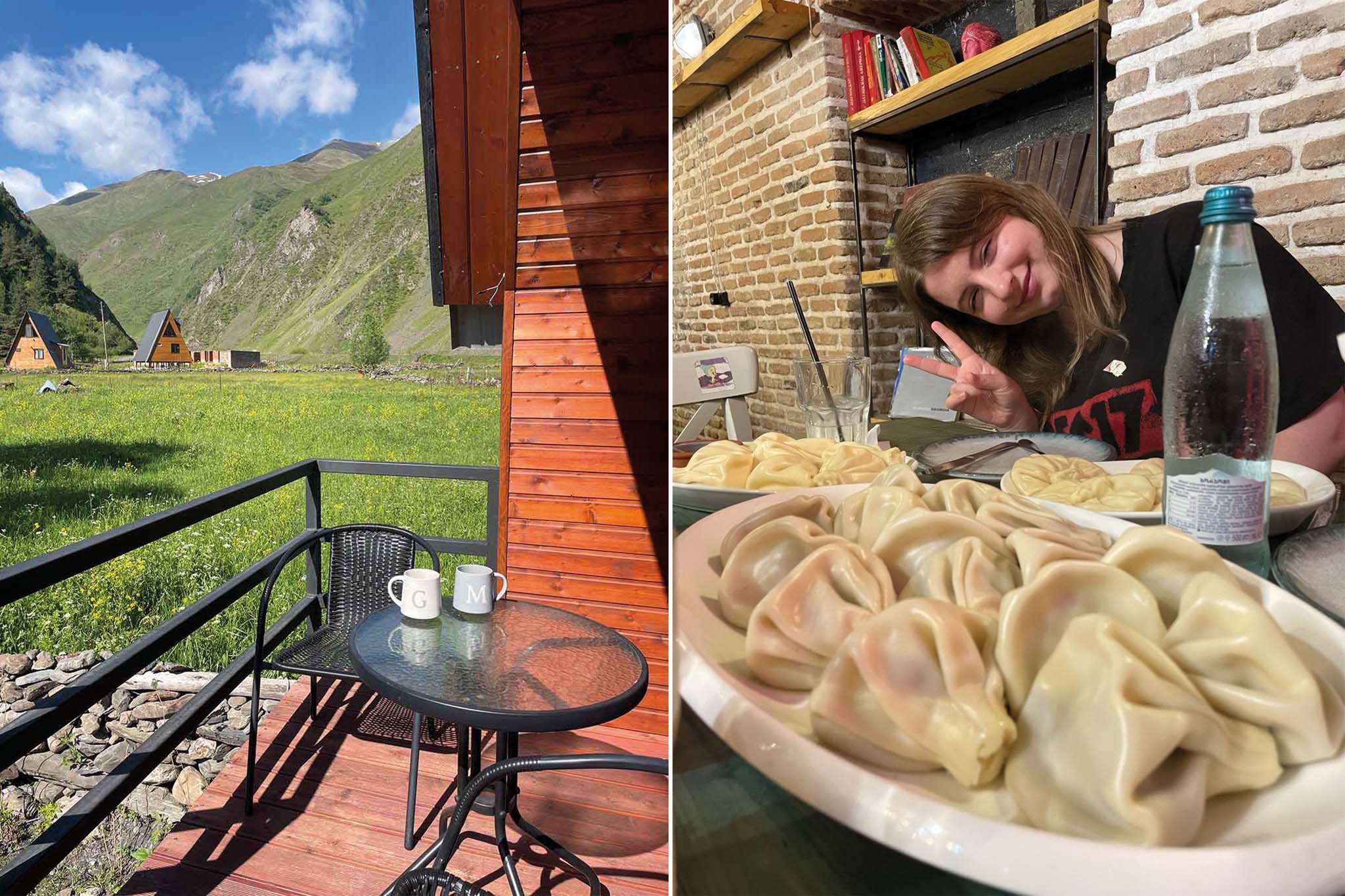 А дальше… Дарьяльское ущелье! С километровыми скалами, бурлящим Тереком и разбитым серпантином военно-грузинской дороги. До ближайшего крупного поселка Степанцминда (он же Казбеги) от границы всего с десяток километров. Это будет первая «цивилизация» — рестораны, кафе, обменники и, конечно, жилье. Выбор последнего огромен — от современных эко-отелей до койко-места в деревенском доме. Забронировать можно и на российских агрегаторах (некоторые работают с грузинскими отелями, но выбор небольшой), и на широко известных импортных — они из России ушли, но если поставить бронирование без предоплаты по карте, то все работает.