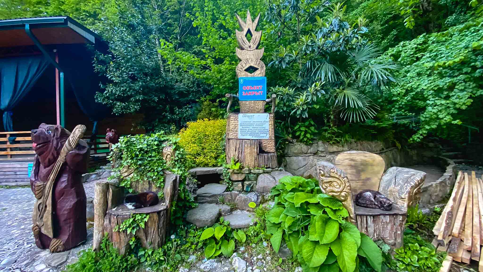 Рядом с водопадом — парк Берендеево царство. Здесь, как в сказке. А какой воздух! Значительная часть леса — древний и редкий самшит колхидский.