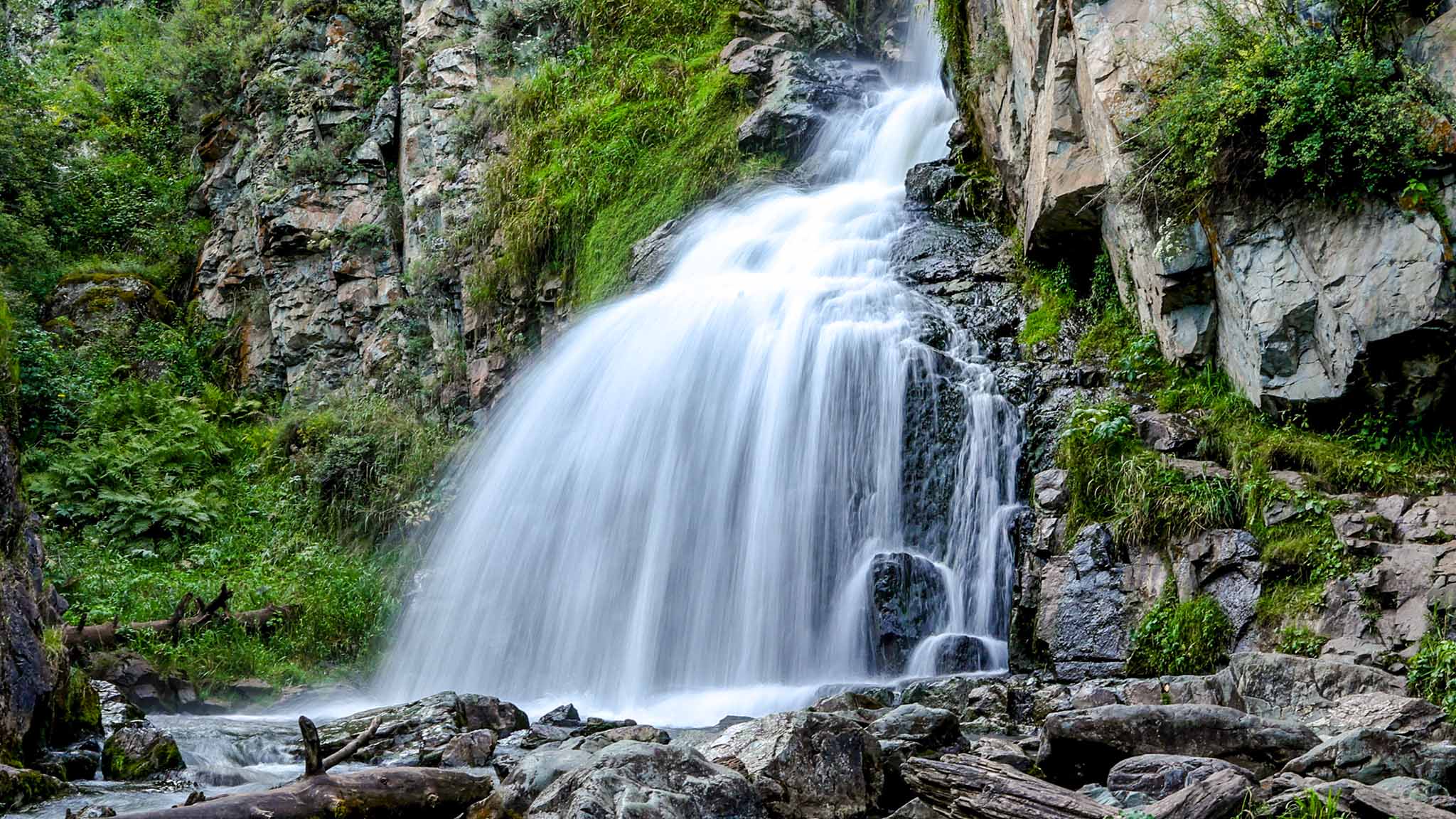 Чараур открыли в 1980-е альпинисты, которые изучали эти места и случайно наткнулись на водопад. А он оказался таким мощным. Вода падает с высоты, через 150 метров бьется о порог, а потом скатывается еще на сто метров и внизу превращается в мелкие брызги.