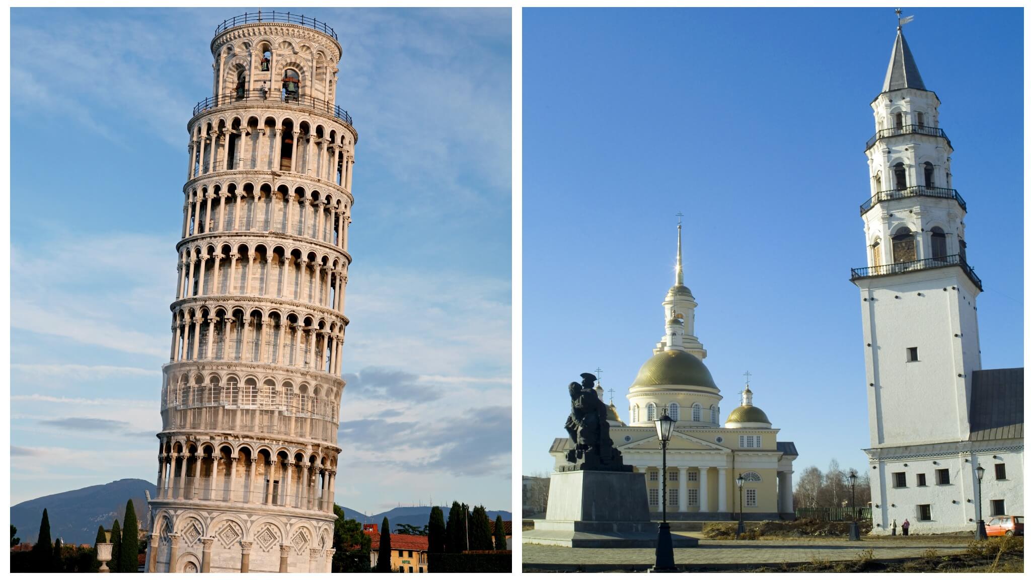 Историки же утверждают, что при строительстве Невьянской башни в Свердловской области просто просел грунт — рядом находится река Нейва. Архитектор распорядился расположить убывающие по размерам восьмигранные ярусы на квадратном основании без отклонения от вертикальной оси. Из-за этого у башни образовался саблевидный изгиб. В результате строение наклонилось на 1,85 метра. К тому же Невьянская на 80 сантиметров выше Пизанской.