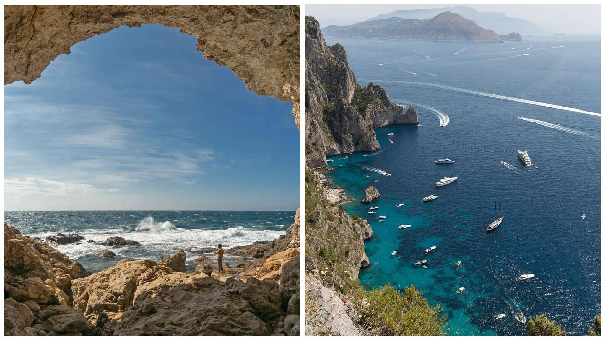 Стоит только упомянуть в разговоре Капри, тут же слышишь вопрос: «А в Голубом гроте вы были?» Это действительно визитная карточка итальянского острова. В древние времена грот служил купальней римского императора Тиберия, а теперь из-за невероятного оттенка воды манит миллионы туристов. Сапфировые и нежно-голубые цвета озаряют пещеру. Глубина грота значительно превышает его размеры, а погрузиться на дно еще никому не удалось. Зато здесь можно прибить табличку со своим именем, что-то из серии «Здесь был Тиберий, а вот теперь Вася».
