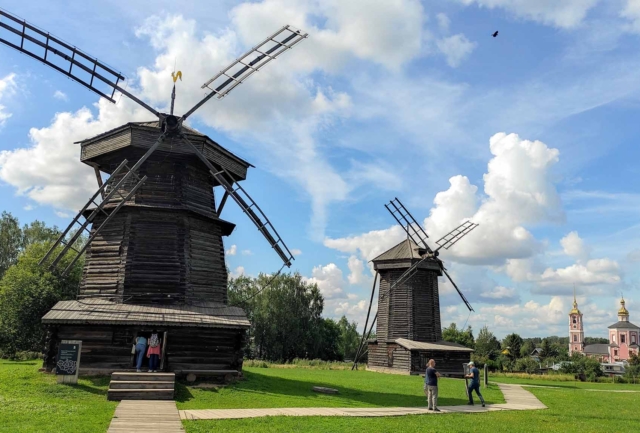 Нас в этом городке интересуют, прежде всего, местные памятники деревянного зодчества и Марийский этнографический музей. Он был создан относительно недавно – в 1983 году к 400-летию Козьмодемьянска, но успел стать настоящей визитной карточкой городка. На его огромной территории под открытым небом представлены: действующая деревянная шатровая красавица-мельница, жилая изба, амбар, кузница, бани (по-чёрному и по-белому), колодец-журавль, шалаш, высокие качели, плетёные заборы.