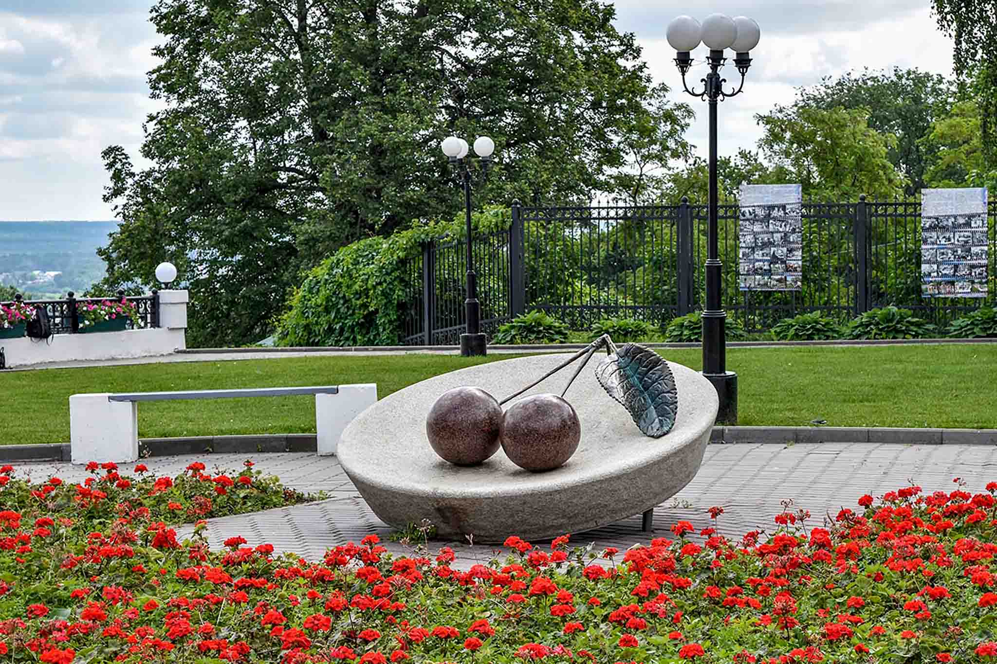 Настоящий вишневый сад Владимира теперь называется Патриаршим и находится в двадцати метрах от памятника. Мало кто знает, что и сейчас там выращивают пять сортов этой ягоды: «Левинка», «Васильевская», «Сайка», «Бель-Алуха», «Родителева». Последний сорт признан российским стандартом, с ним сравнивают все остальные.