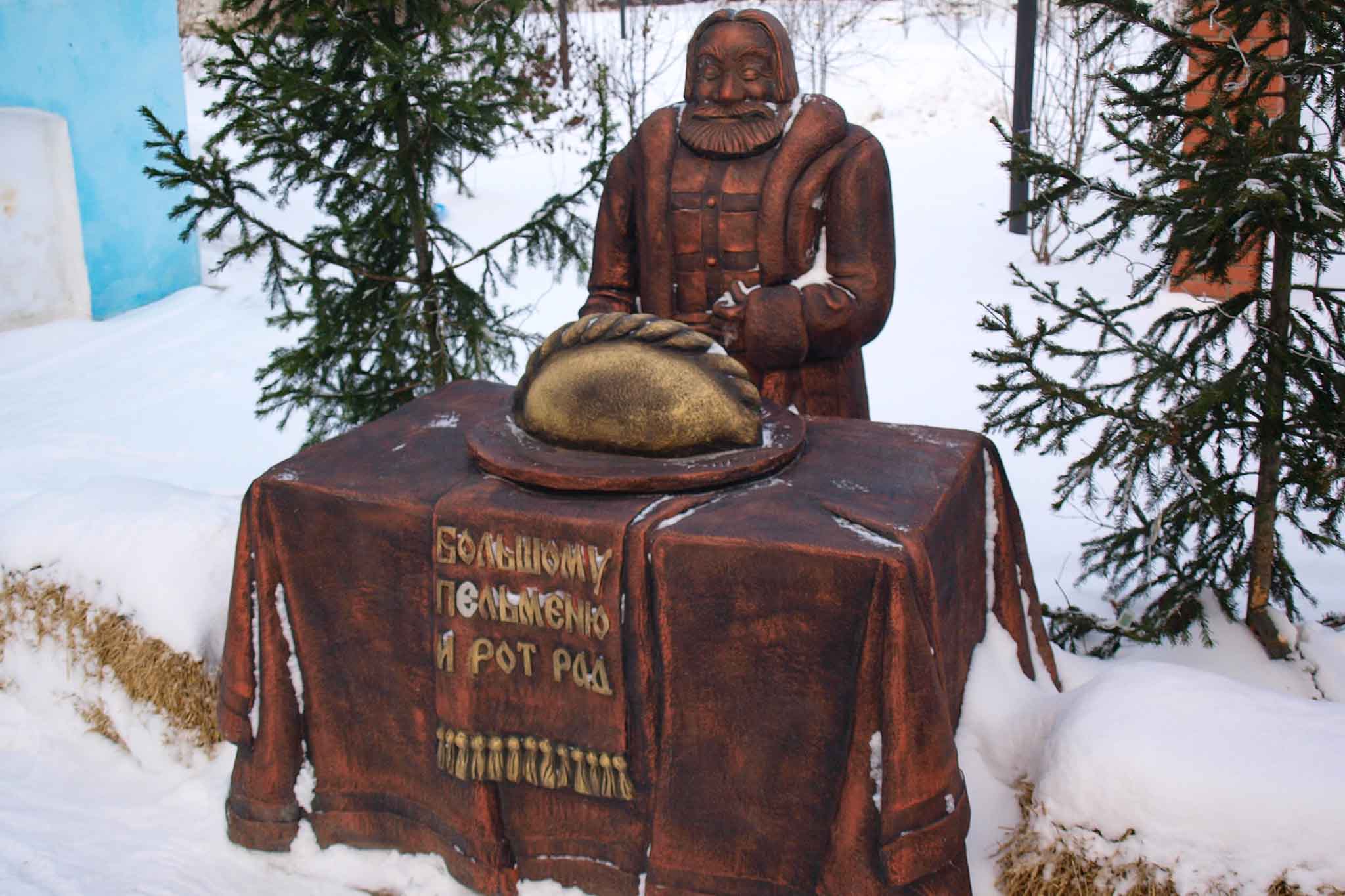 Памятник пельменю поставили в старинной части города, во дворе дома купца Василия Смирнова. Здесь уже несколько лет работает единственный в мире музей, посвященный уральскому пельменю.