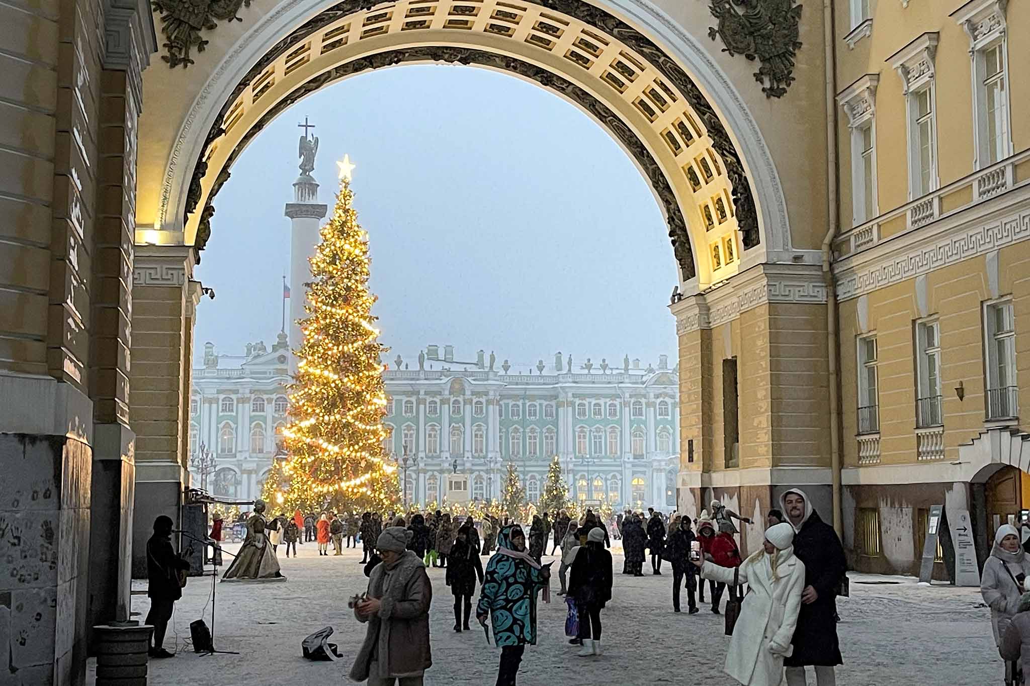 Первое открытие для тех, кто приезжал в Петербург только летом, — сезонное преображение Невского проспекта. Перед праздниками его так густо украшают иллюминацией! После наступления сумерек ходишь, задрав голову от восторга: гирлянды, звезды на деревьях, подсветка исторических зданий.