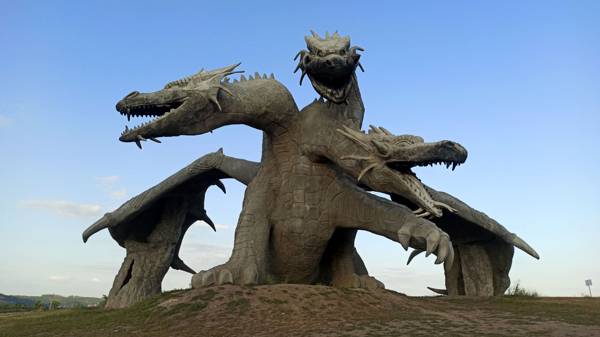 Трехголовый герой народных сказок — визитная карточка Кудыкиной горы. Впечатляющая скульптура поднимается на высоту 15 м. В 20:00 она оживает и из внушительных пастей вырывается яркое пламя.