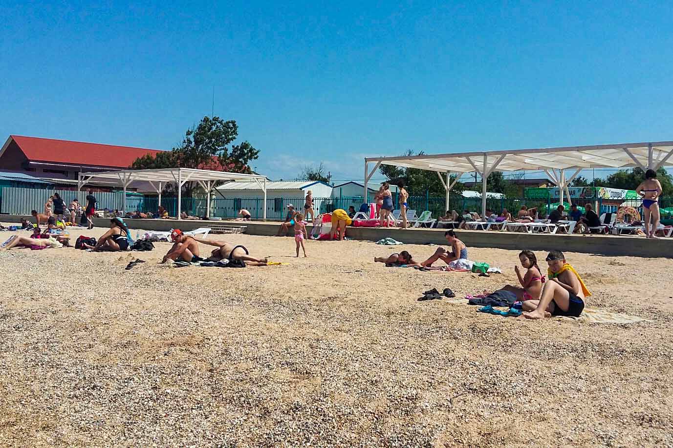 После водно-грязевых процедур иду по побережью. В Голубицкой почти весь берег застроен базами отдыха. Это ее особенность. В этом году здесь останавливаются в основном автотуристы со всех регионов страны. Но места есть даже в июле, да и на конец лета можно забронировать комнату. Тут нет такой загрузки, как в Сочи, Анапе и Геленджике. В отелях с нетерпением ждут туристов и готовы сделать им скидки на проживание — лишь бы приехали.