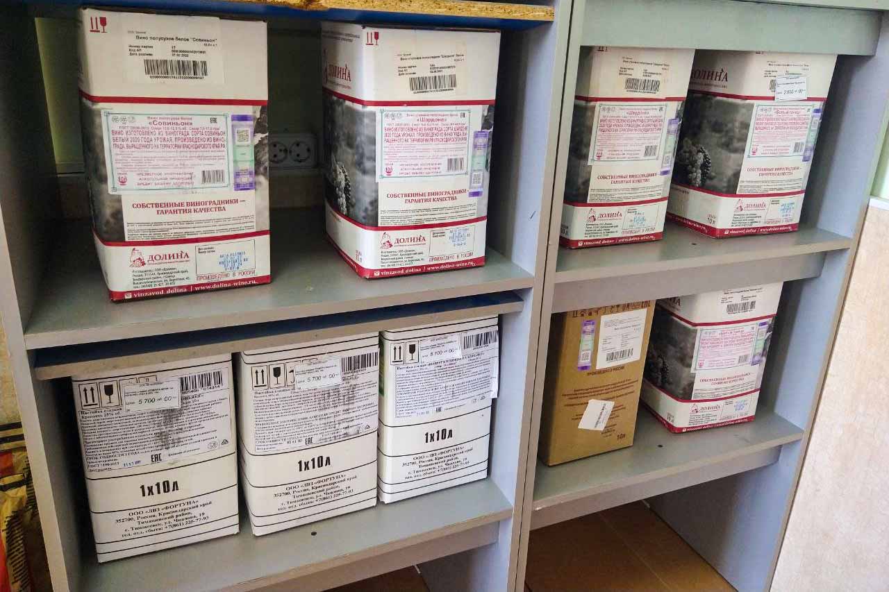 В фирменном винном магазине нашли бутылочку игристого за 500 рублей с таманских виноградников. Что очень удивило, вино здесь продают не только по 0,5 в стекле, но и целыми коробками по 10 литров.