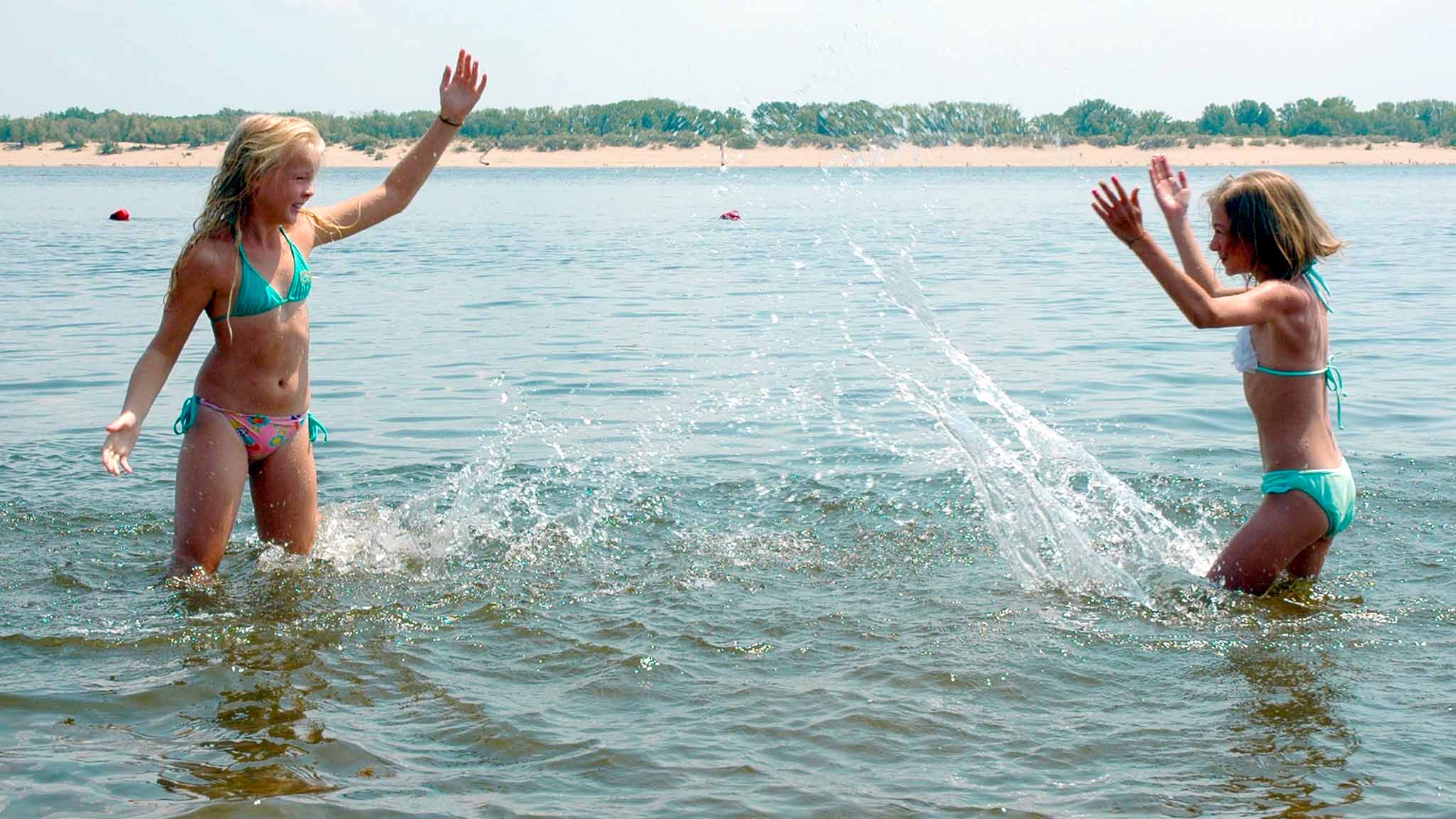 Некоторые, кстати, по старинке уходят за косу, купаются в Оке. Но местные жители предупреждают: течение в этом месте сильное, резкий перепад глубины. Да и сам вход в реку — по камням и ракушкам.