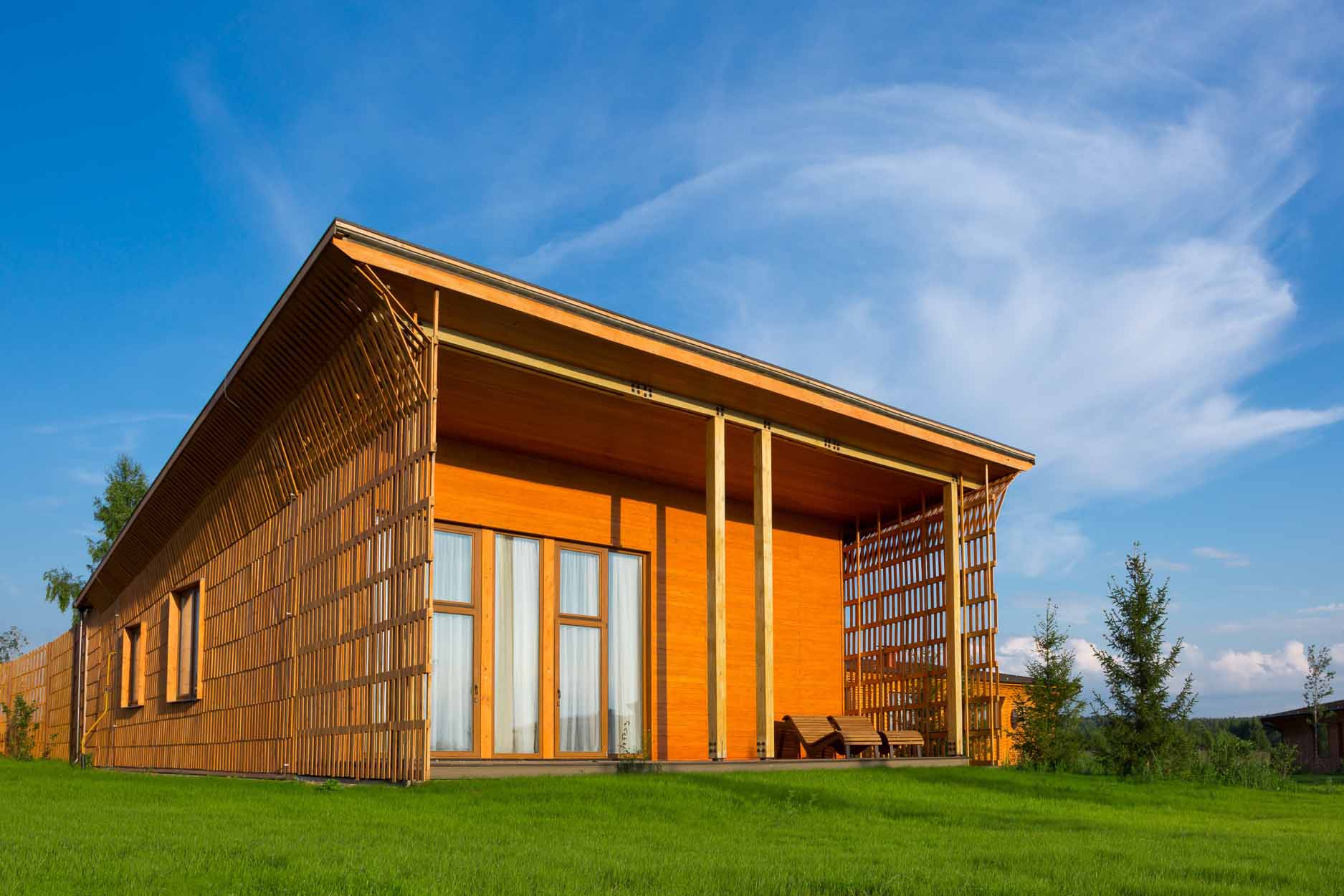 Для желающих отдохнуть с друзьями или устроить семейный отпуск в загородном доме на территории парк-отеля есть отдельные коттеджи. Они вмещают от 2 до 8 гостей. В таких домиках можно поселиться своей компанией и наслаждаться отдыхом в уединении.