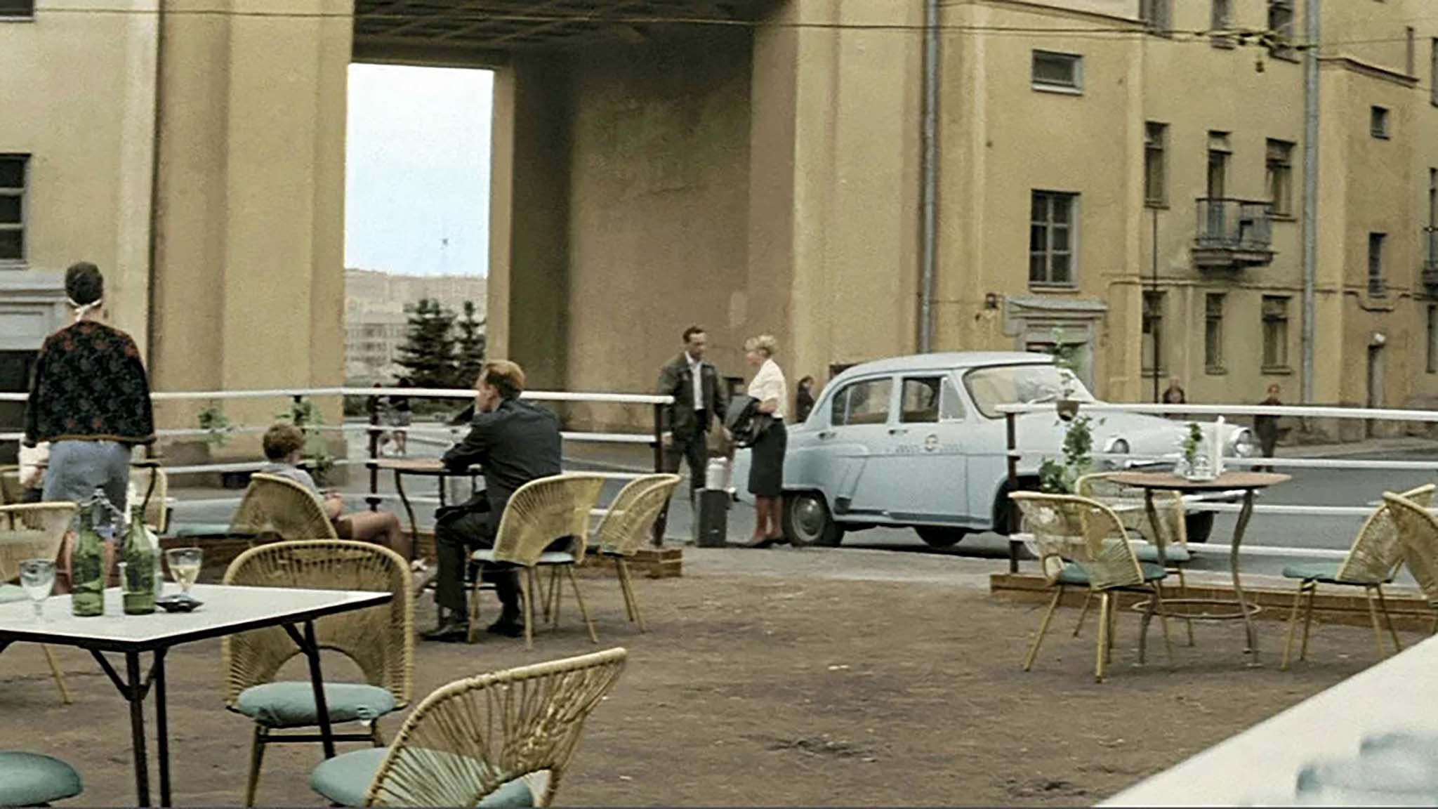 Легендарный фильм режиссера Георгия Данелии и сценариста Геннадия Шпаликова стал началом актерской карьеры для Евгения Стеблова, Владимира Басова, Ирины Мирошниченко и Никиты Михалкова. В кадре видны Котельническая набережная, Москва-река, Кремль, Васильевский спуск, настенная мозаика, изображающая группу рабочих и крестьян, уличные автоматы по продаже газированной воды и крохотный автомобильчик ЗАЗ-965А, получивший прозвище «горбатый». Герои картины проходят мимо автобусов «ЛИАЗ-158» и стилобата недостроенной высотки, где позже выросла огромная гостиница «Россия».