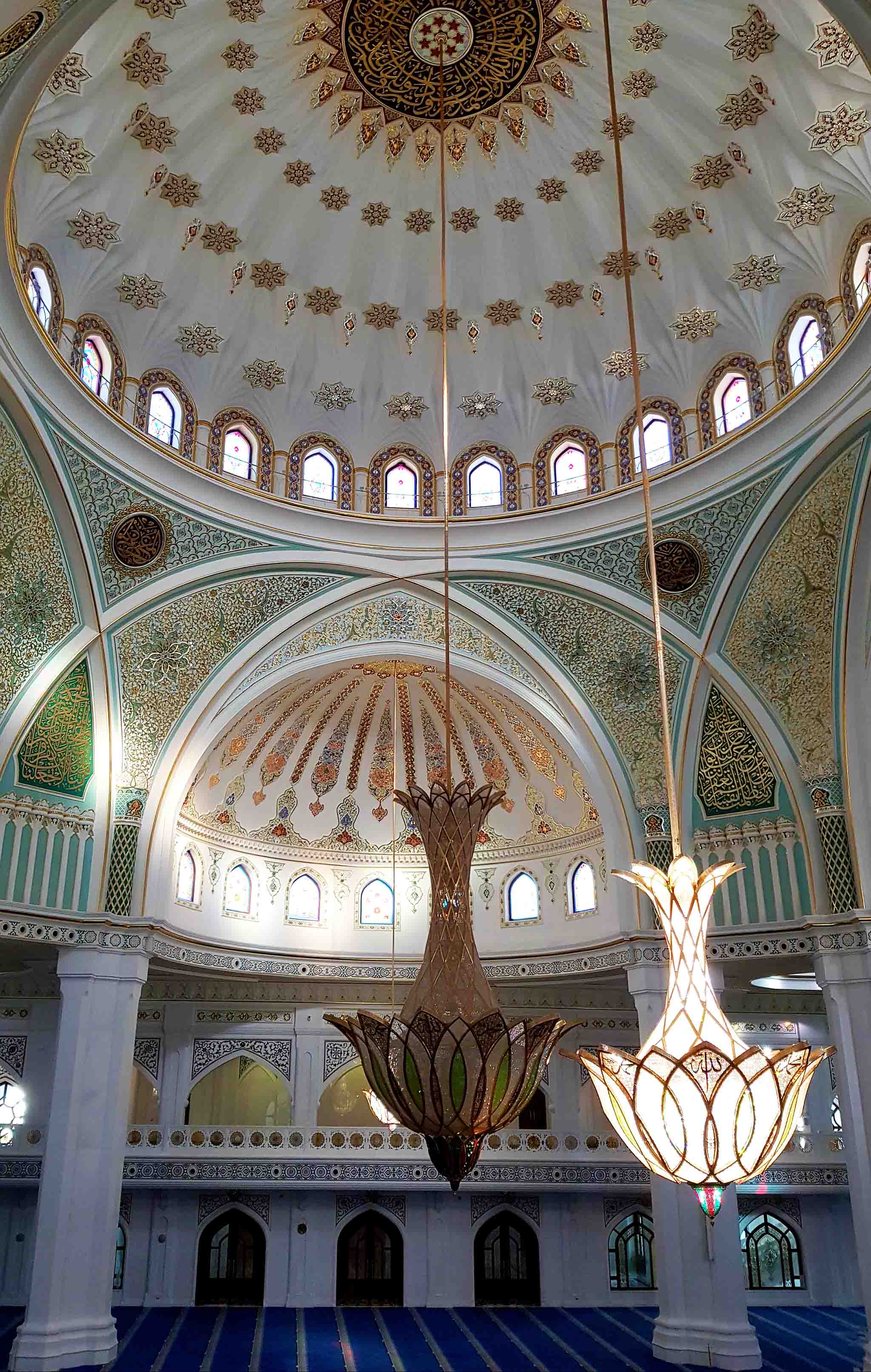 Не запрещено фотографироваться в мечети «Сердце Чечни» – туристки, которых просят снять обувь, надеть национальные платья и покрыть голову, охотно делают снимки. Не только наряды впечатляют, но и красота убранства, люстр и ковров самой мечети.